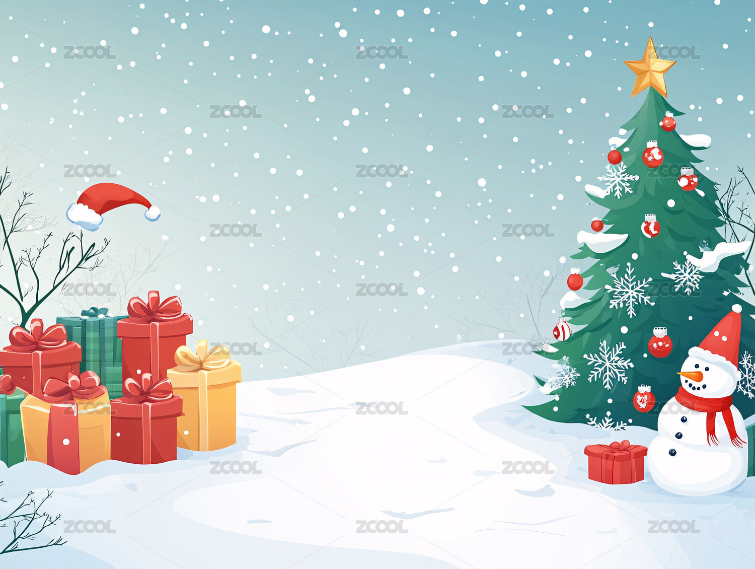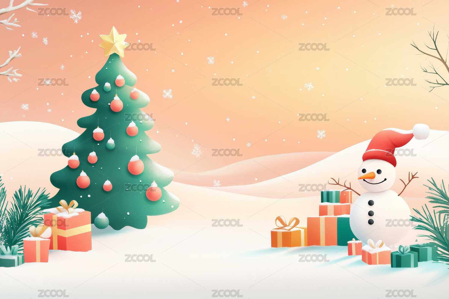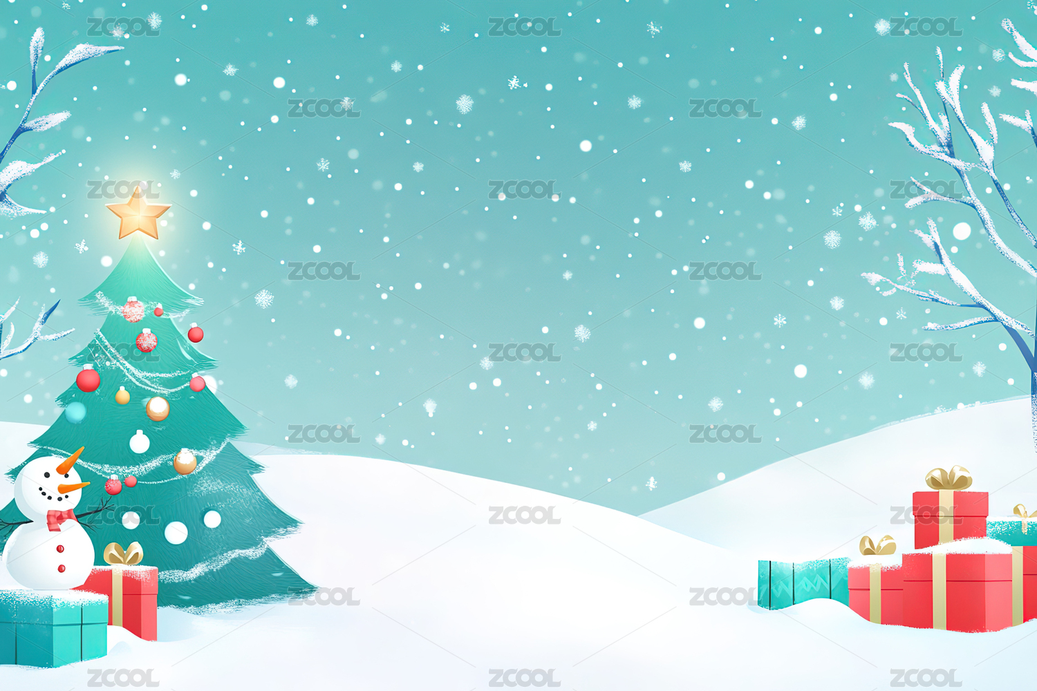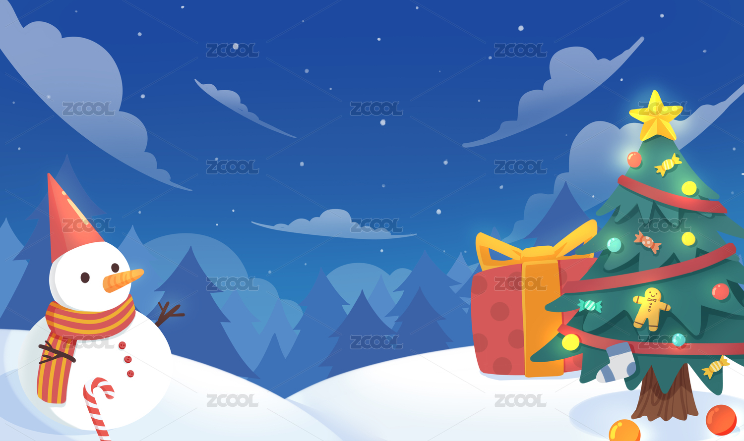 圣诞节雪人节日礼物插画冬天圣诞树背景海报