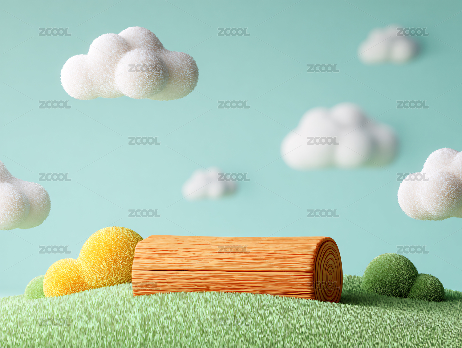 3d卡通草地上的原木
