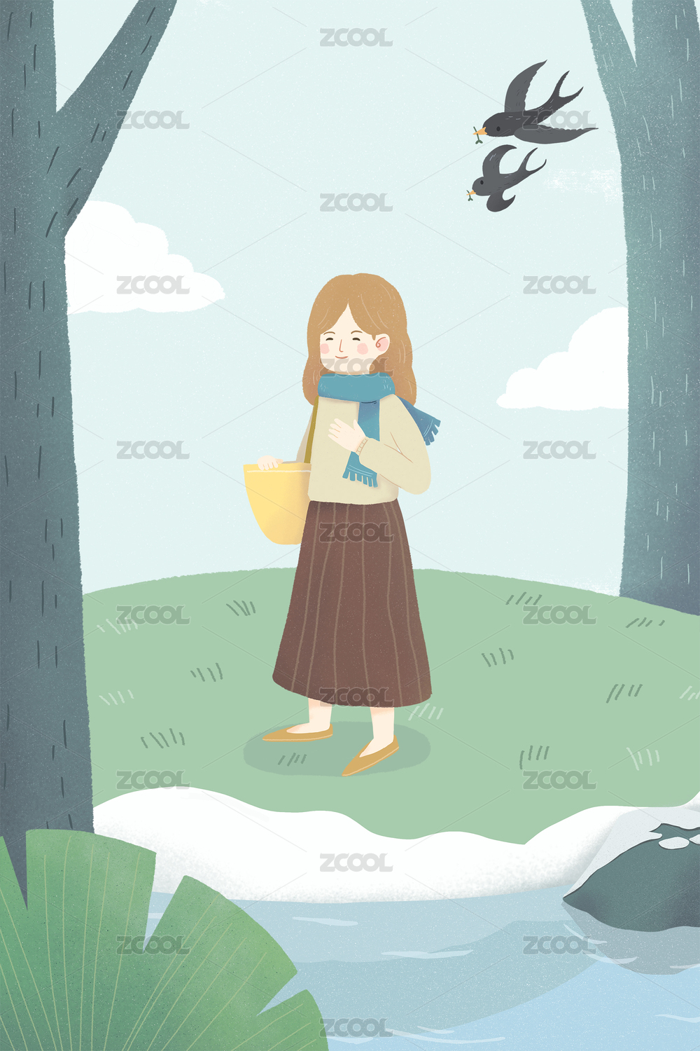 HETCCSV2020,扁平,植树节,312,女孩,浇花,种树,环保,绿色,海报