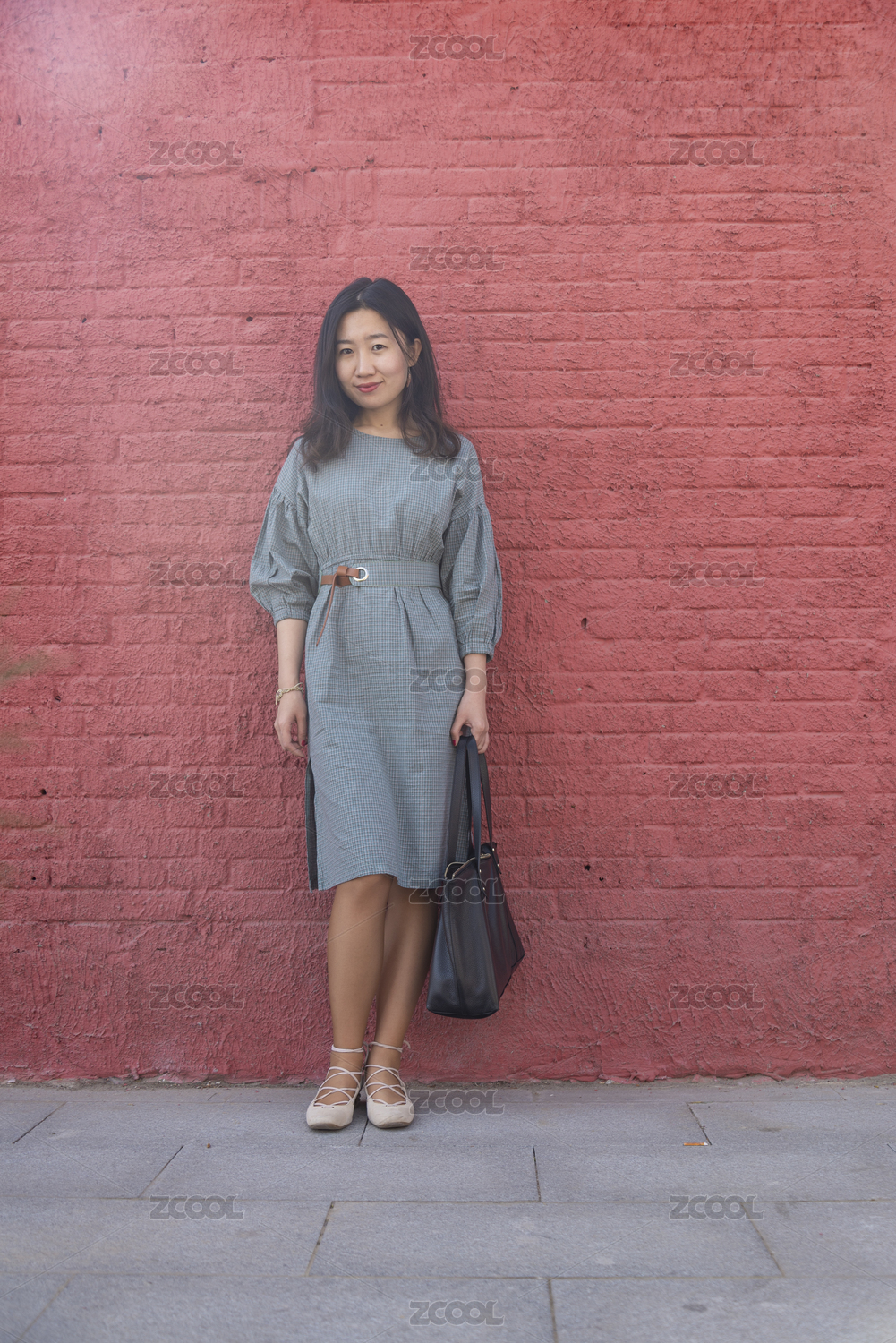 春天在北京798艺术区穿连衣裙的年轻女孩