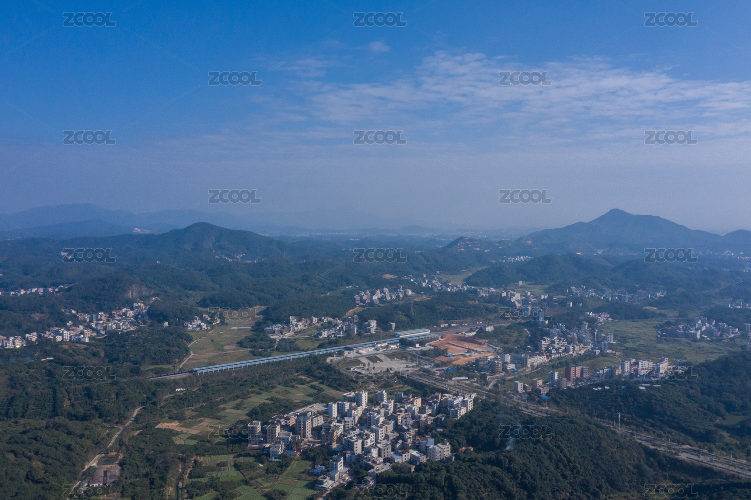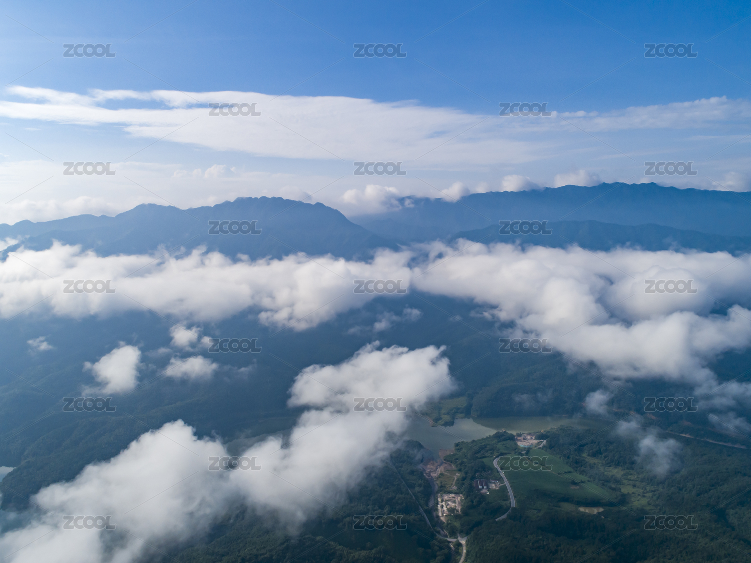 天空,高山,航拍,无人,绿色,云层,起伏,山体,村庄,广西