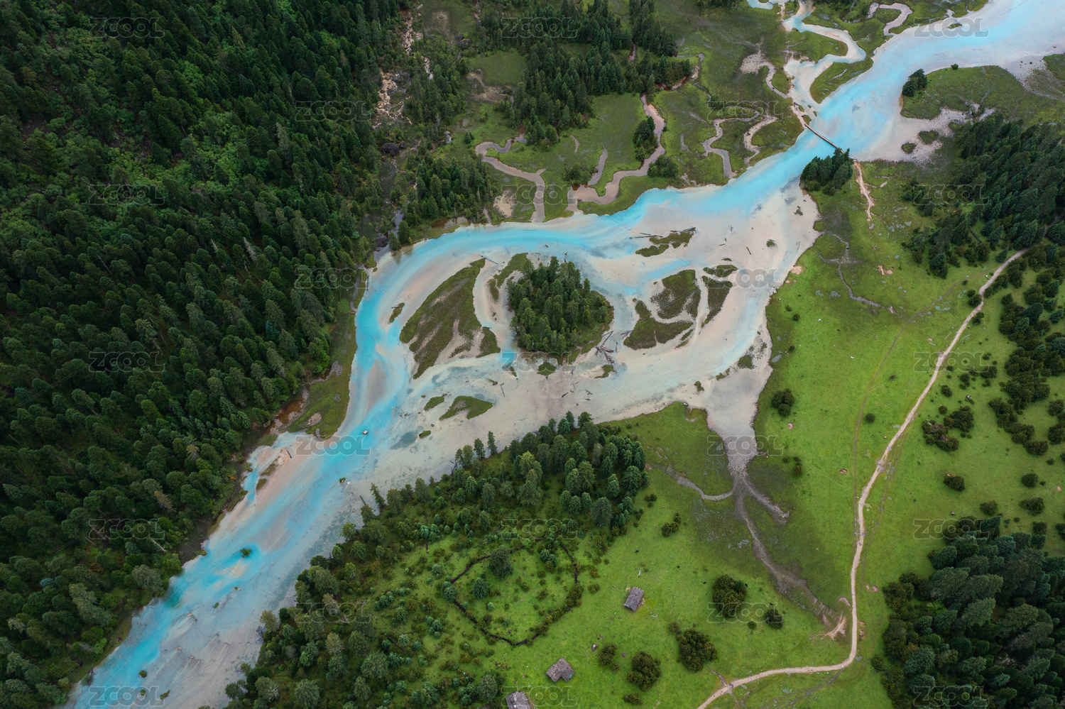 中国四川川西草原上的河流河曲