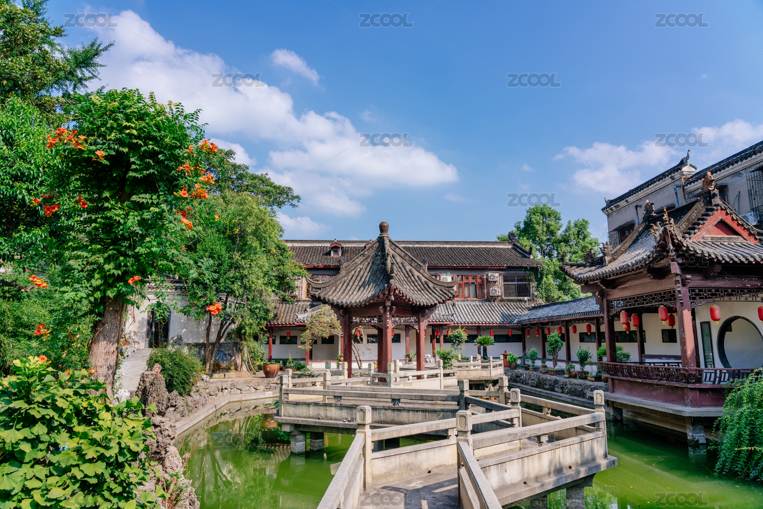 山西大同善化寺大雄宝殿普贤阁水中倒影