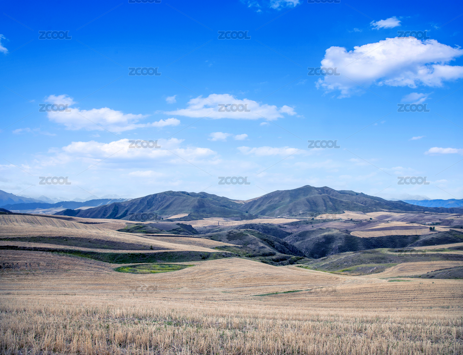 中国新疆江布拉克景区内麦收后的麦茬地景观