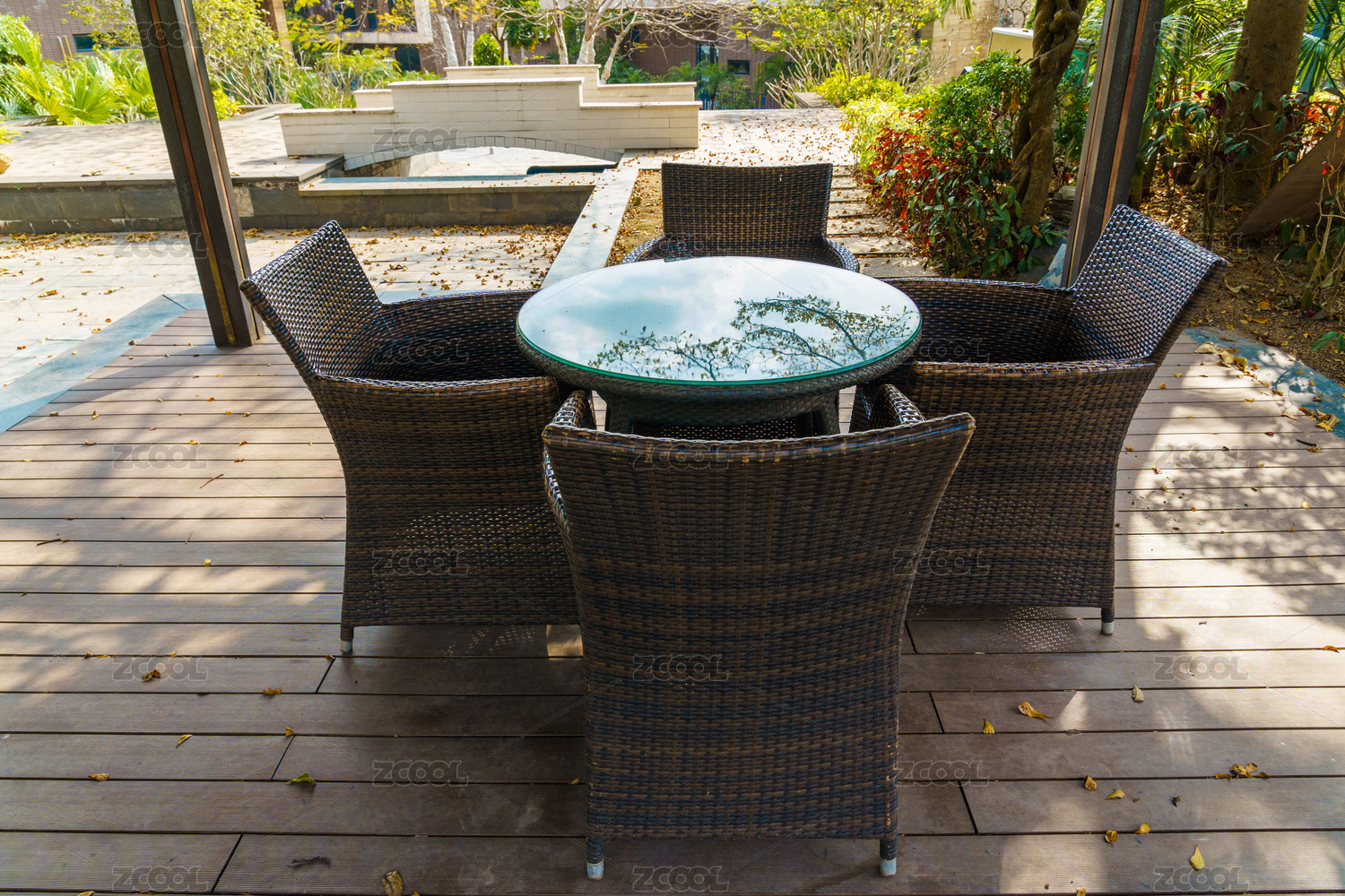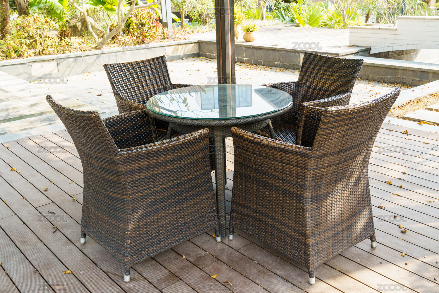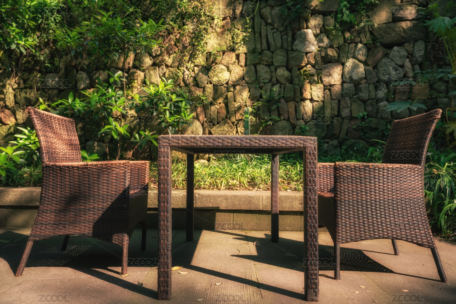 户外藤椅与木桌