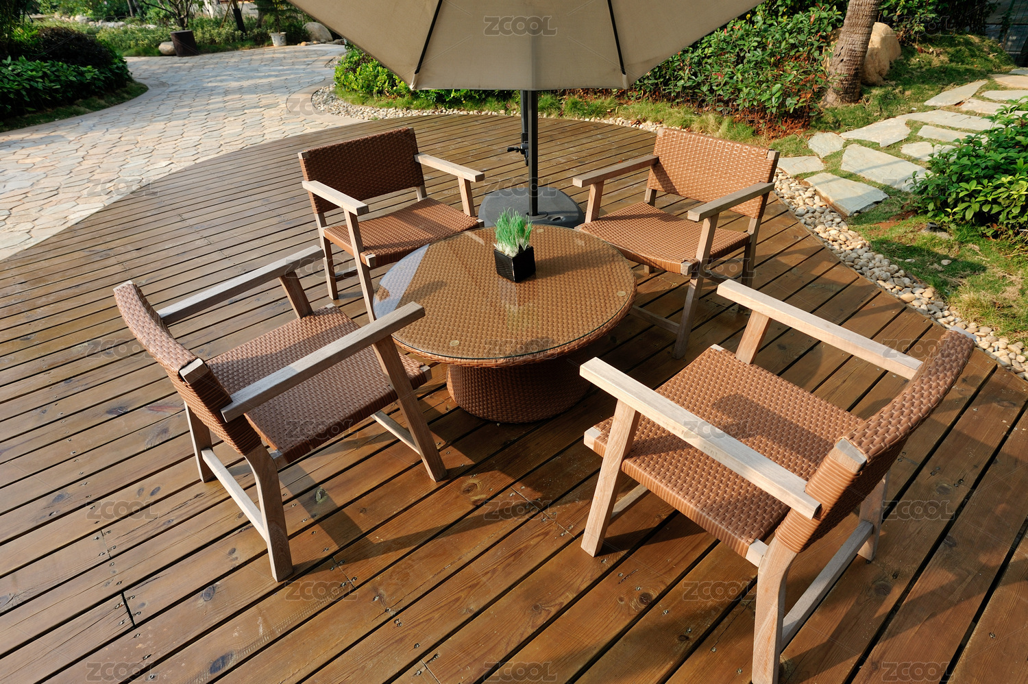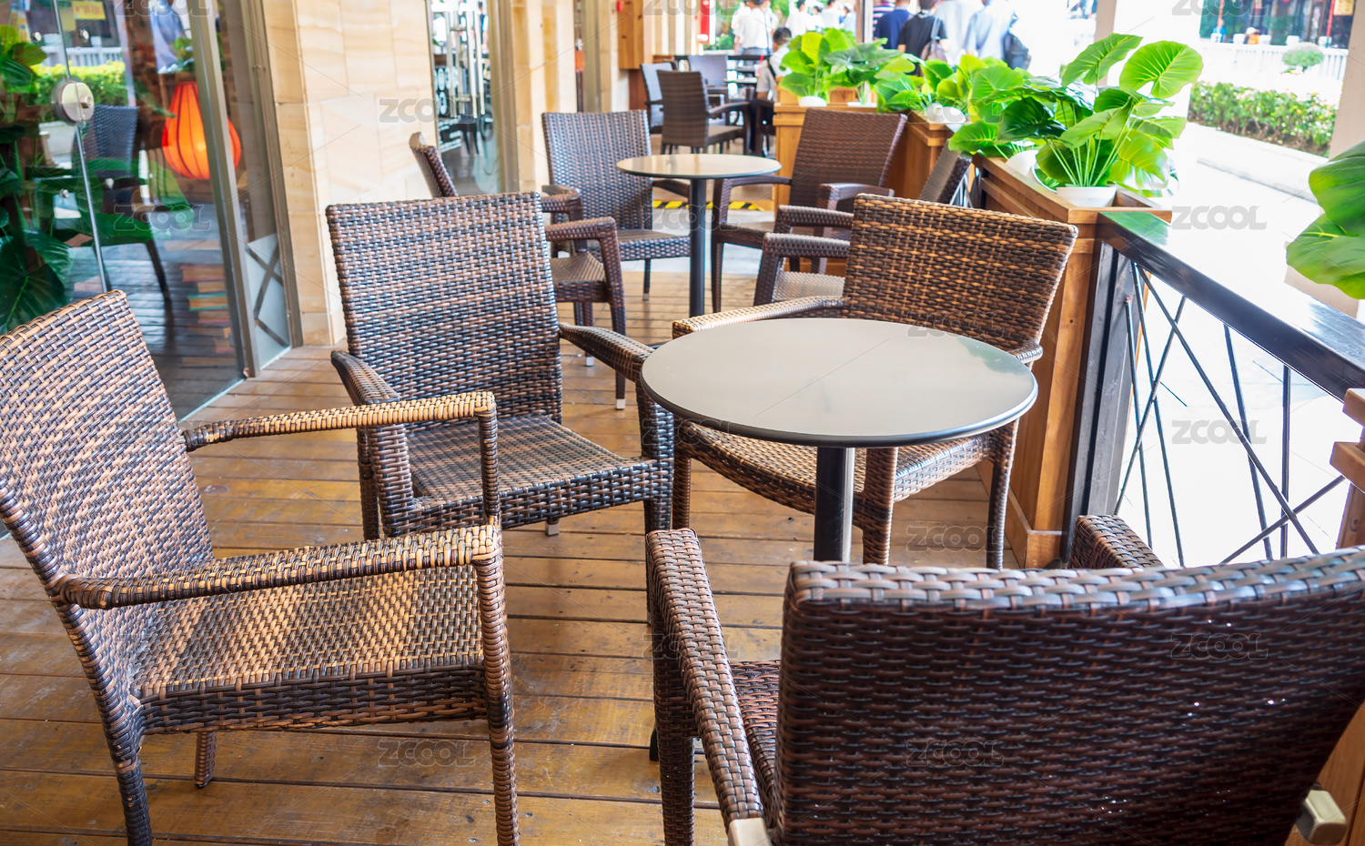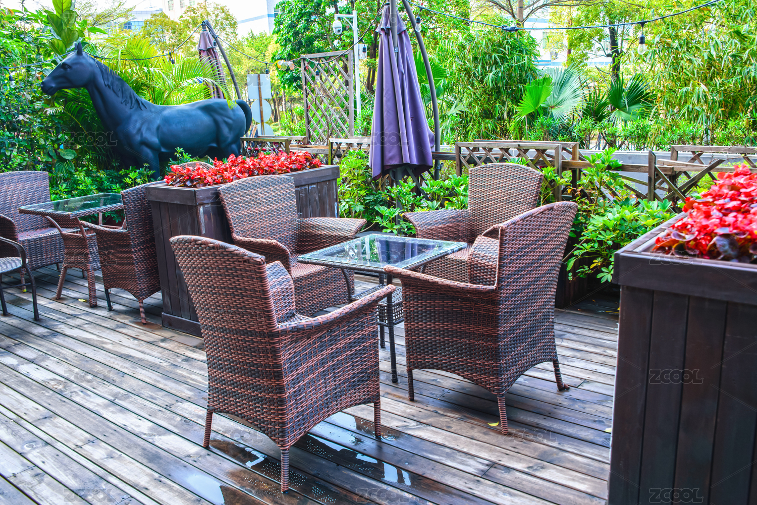 户外藤椅与木桌