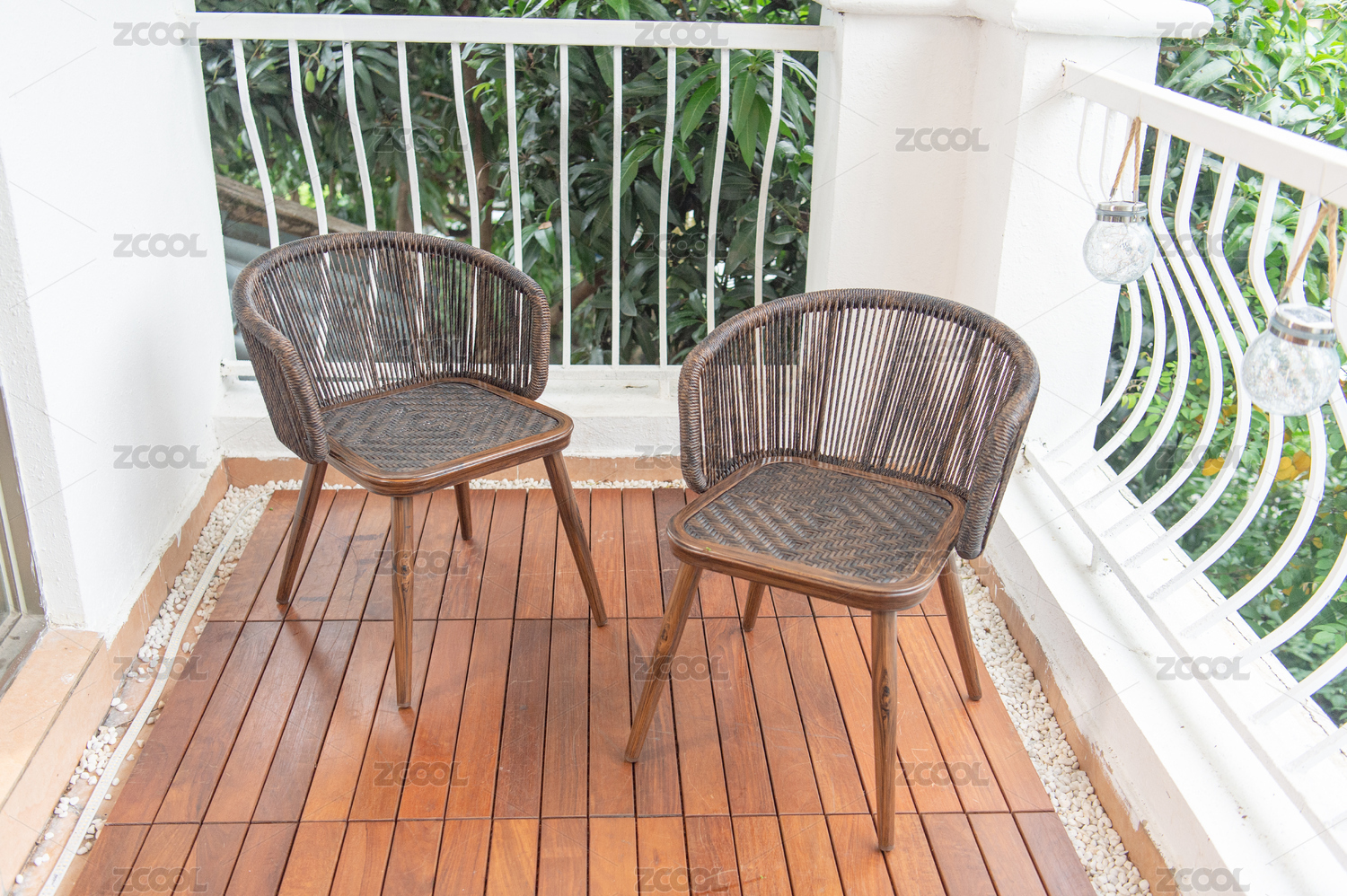 室外放着一对藤椅和一只藤茶几