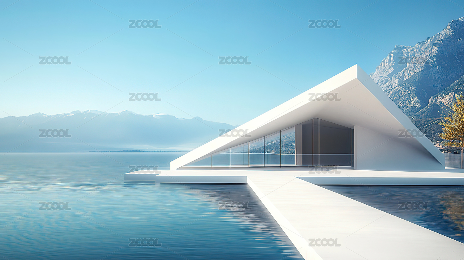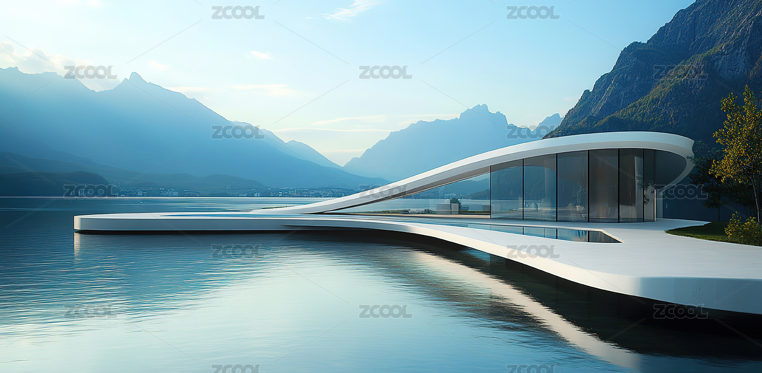 极简现代风格湖边建筑