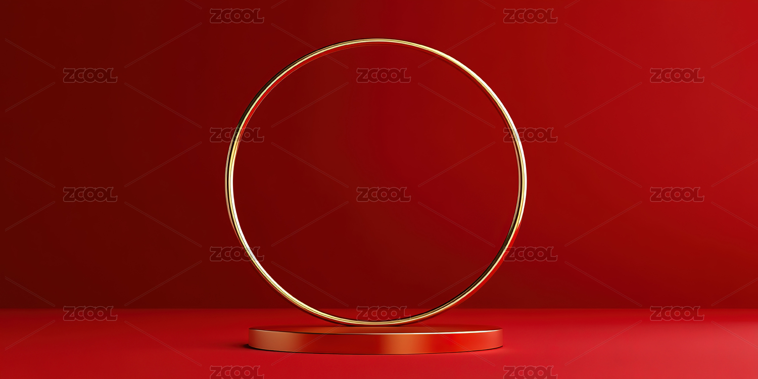 金色产品展台与圆环红色背景