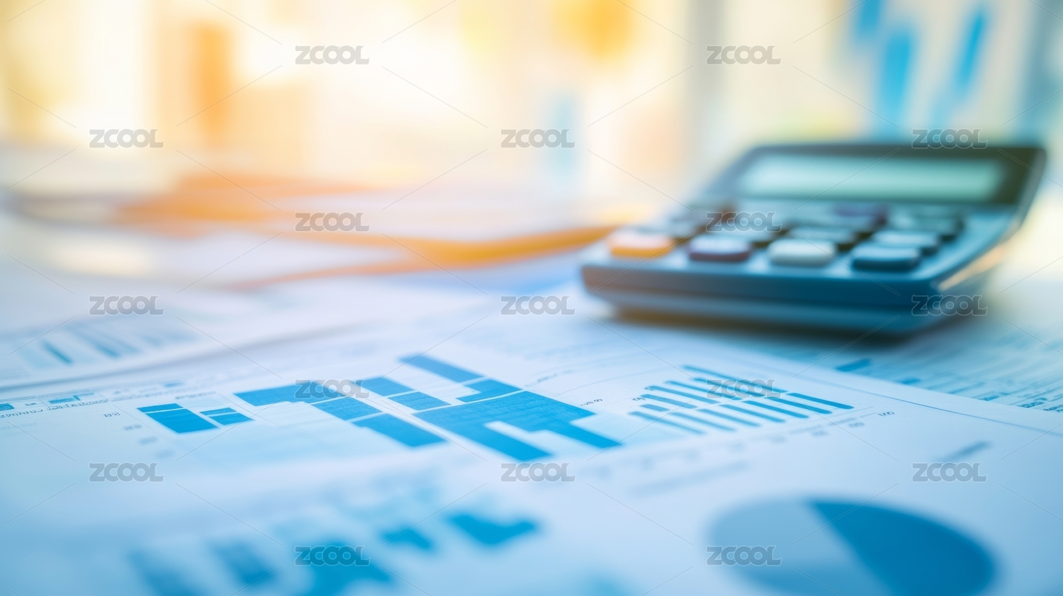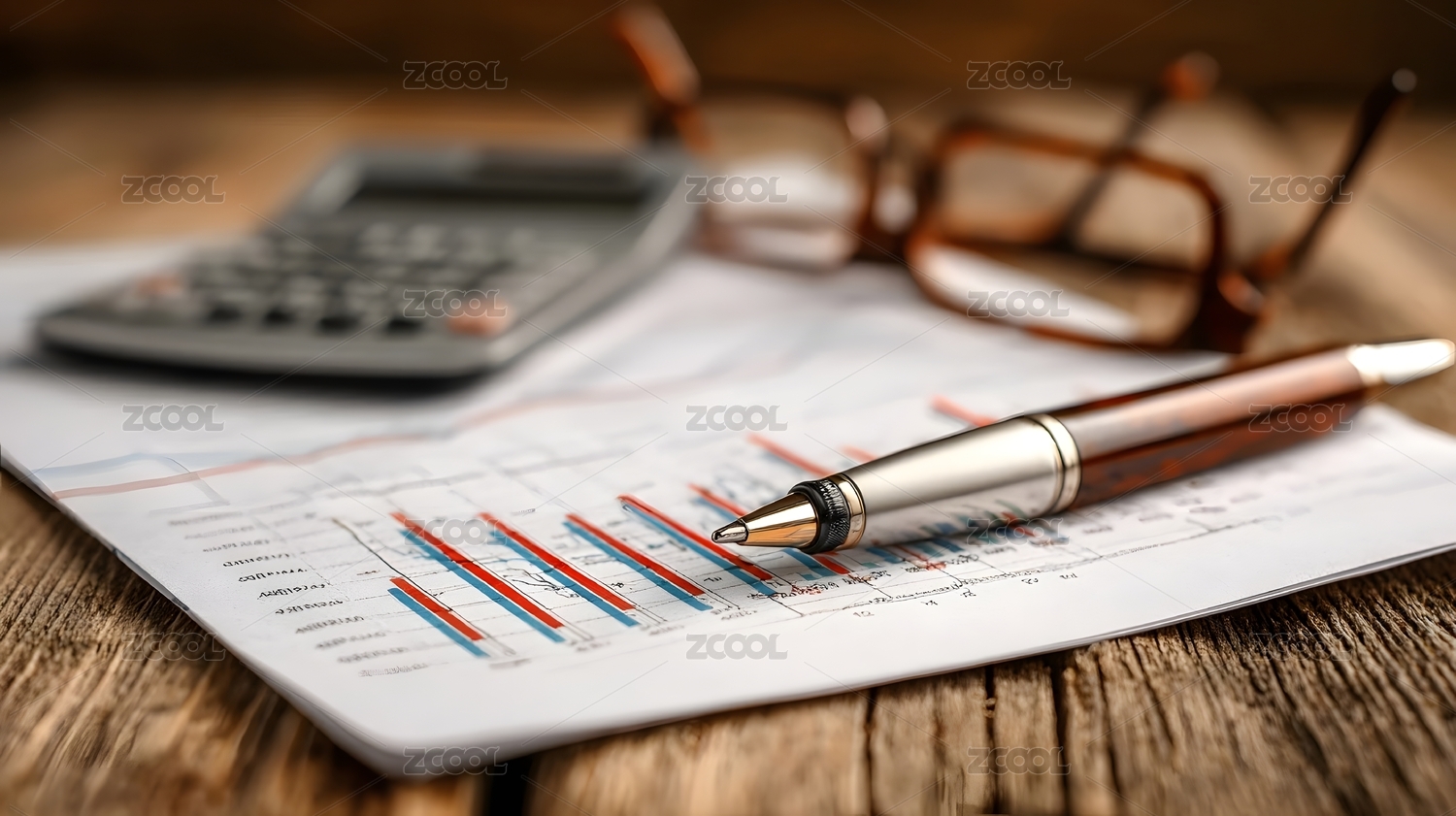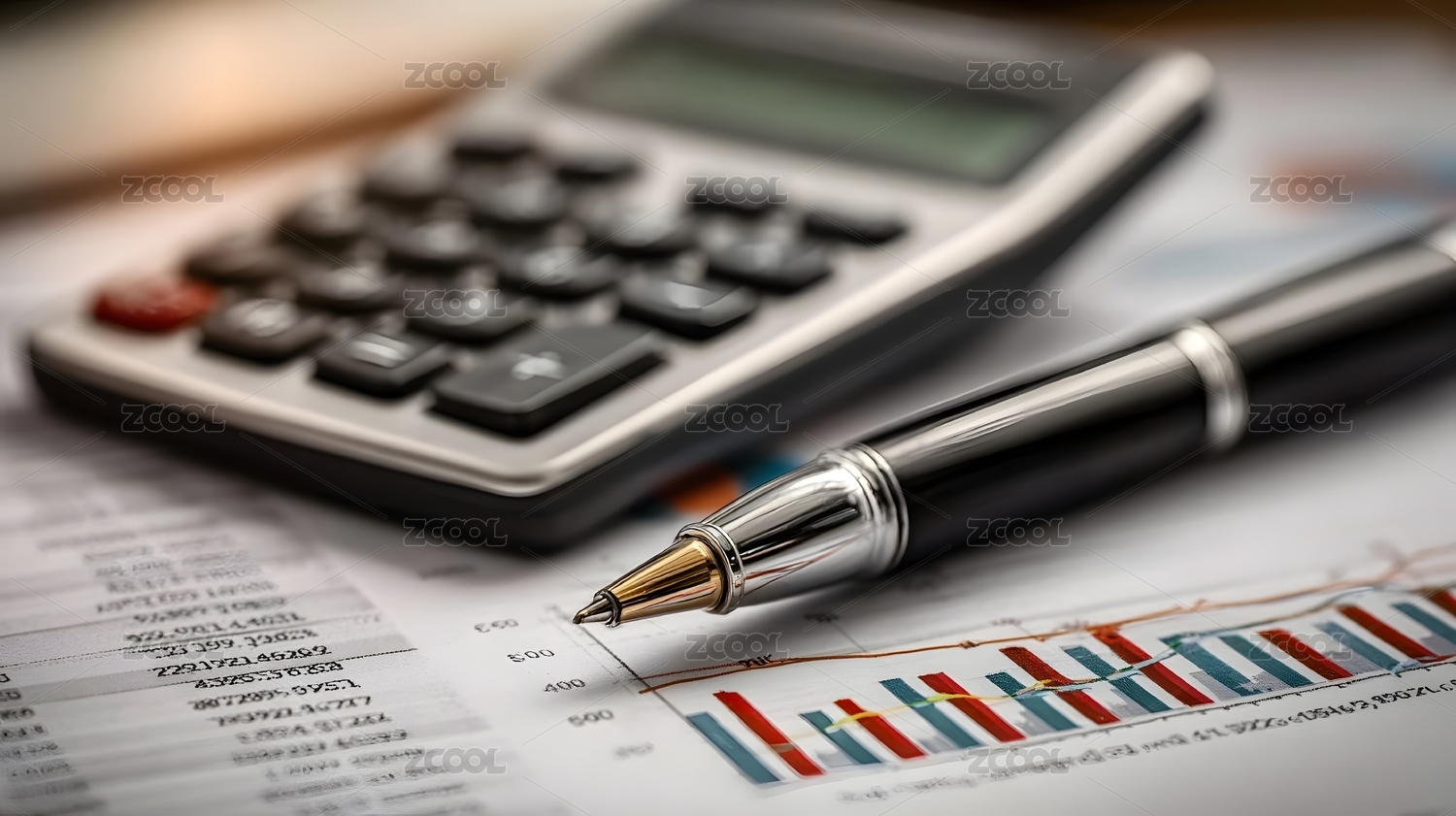 笔和计算器,以及金融数字背景,股市,账单等金融概念