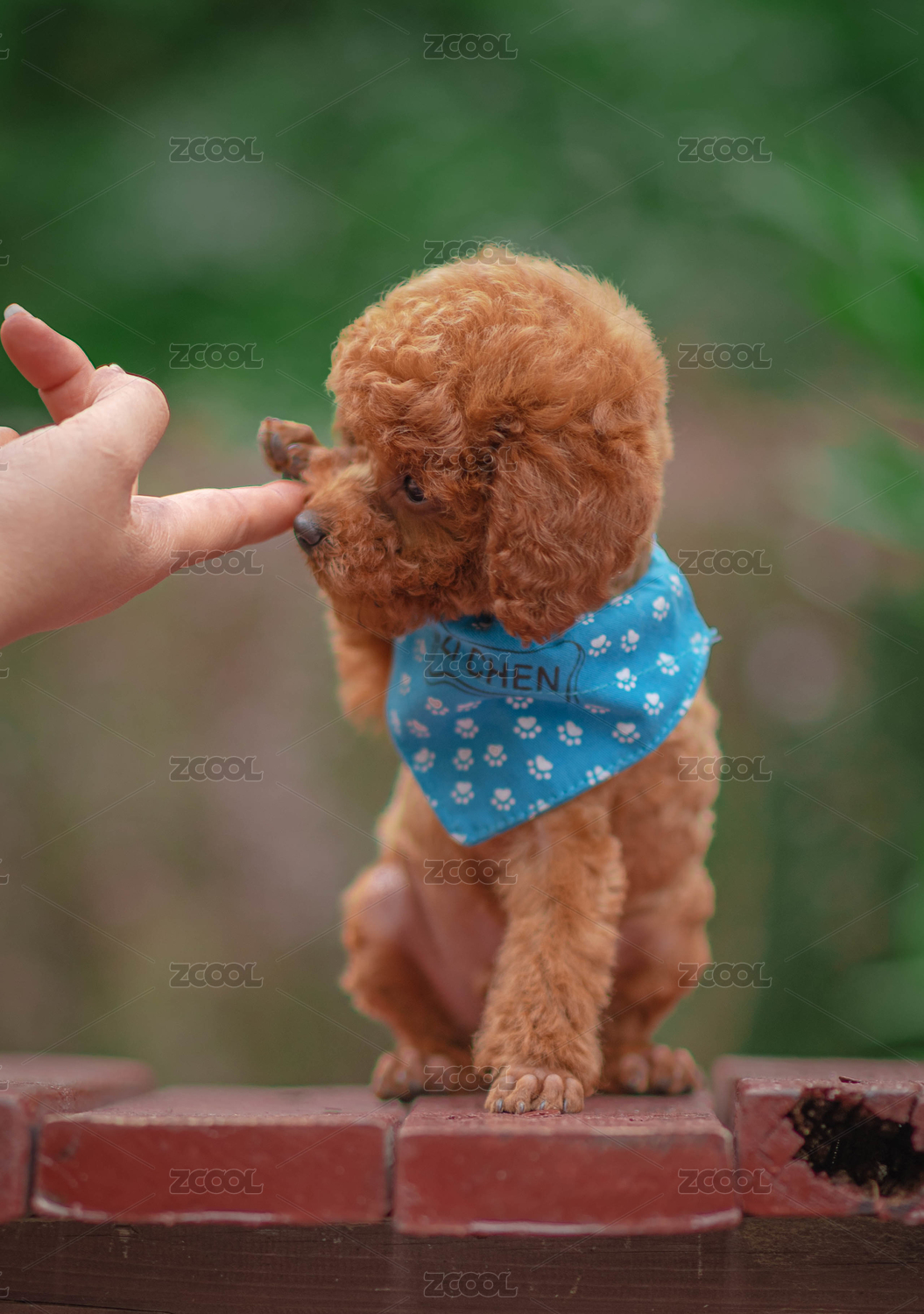泰迪,狗狗,贵宾犬,棕色泰迪,口水巾,实木椅子,绿叶,小狗,红木,向右看