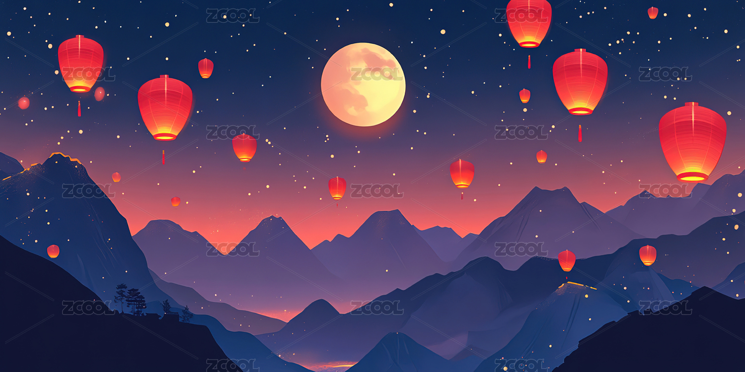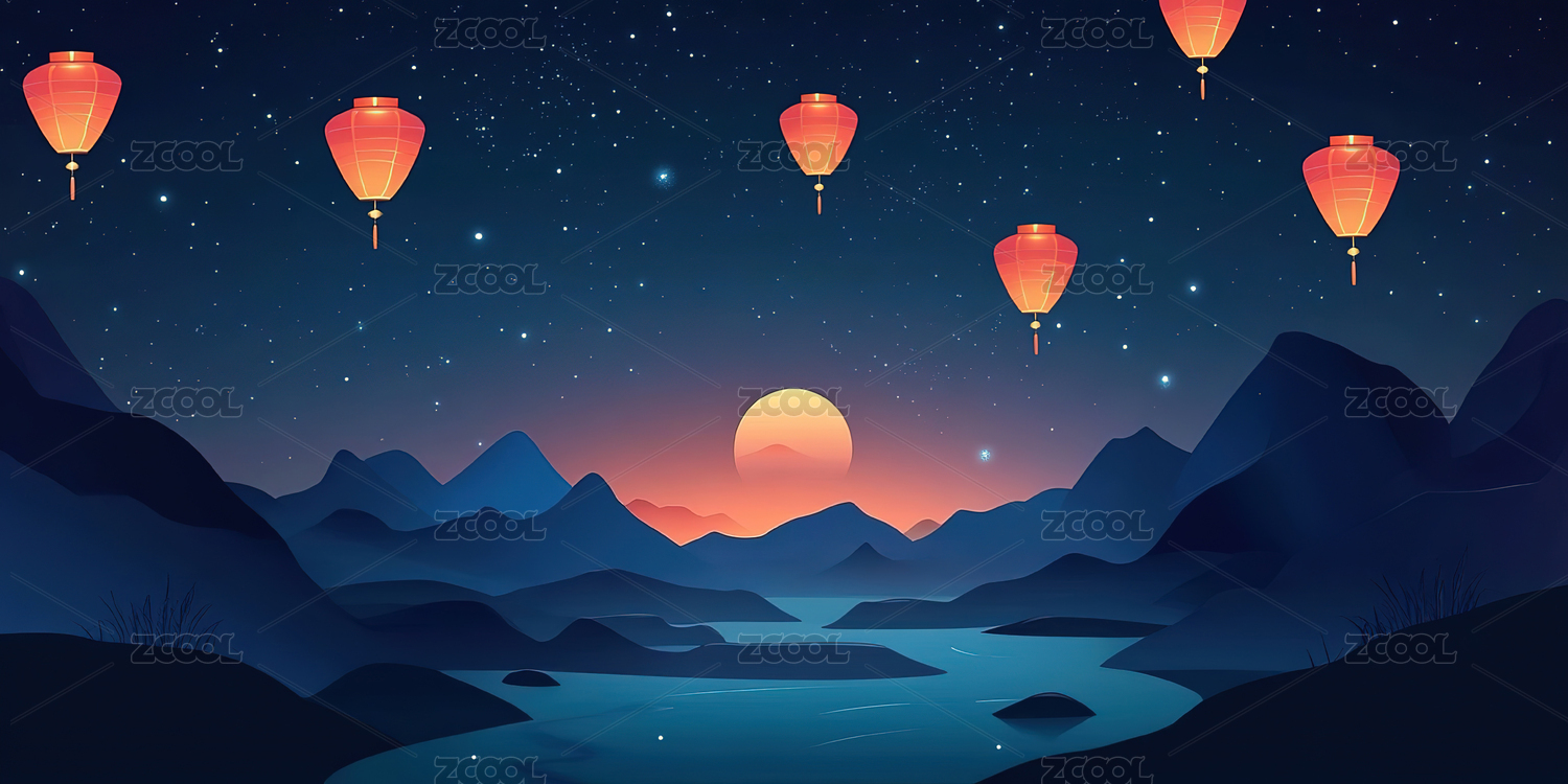 中秋佳节圆圆的月亮,灯笼高高挂起