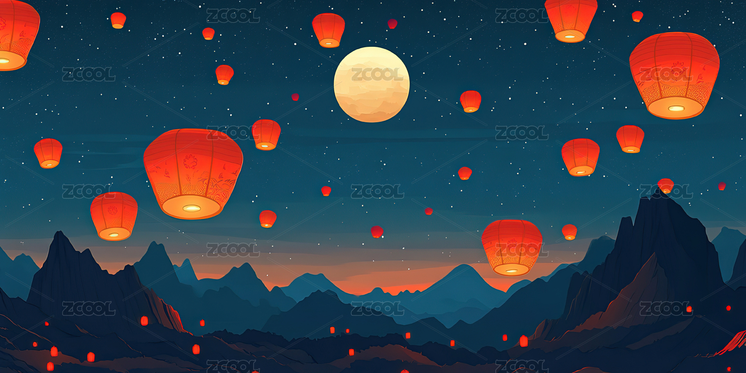 插画,灯笼,节日,国风,春节,中国文化,新年,天灯,背景,弯曲
