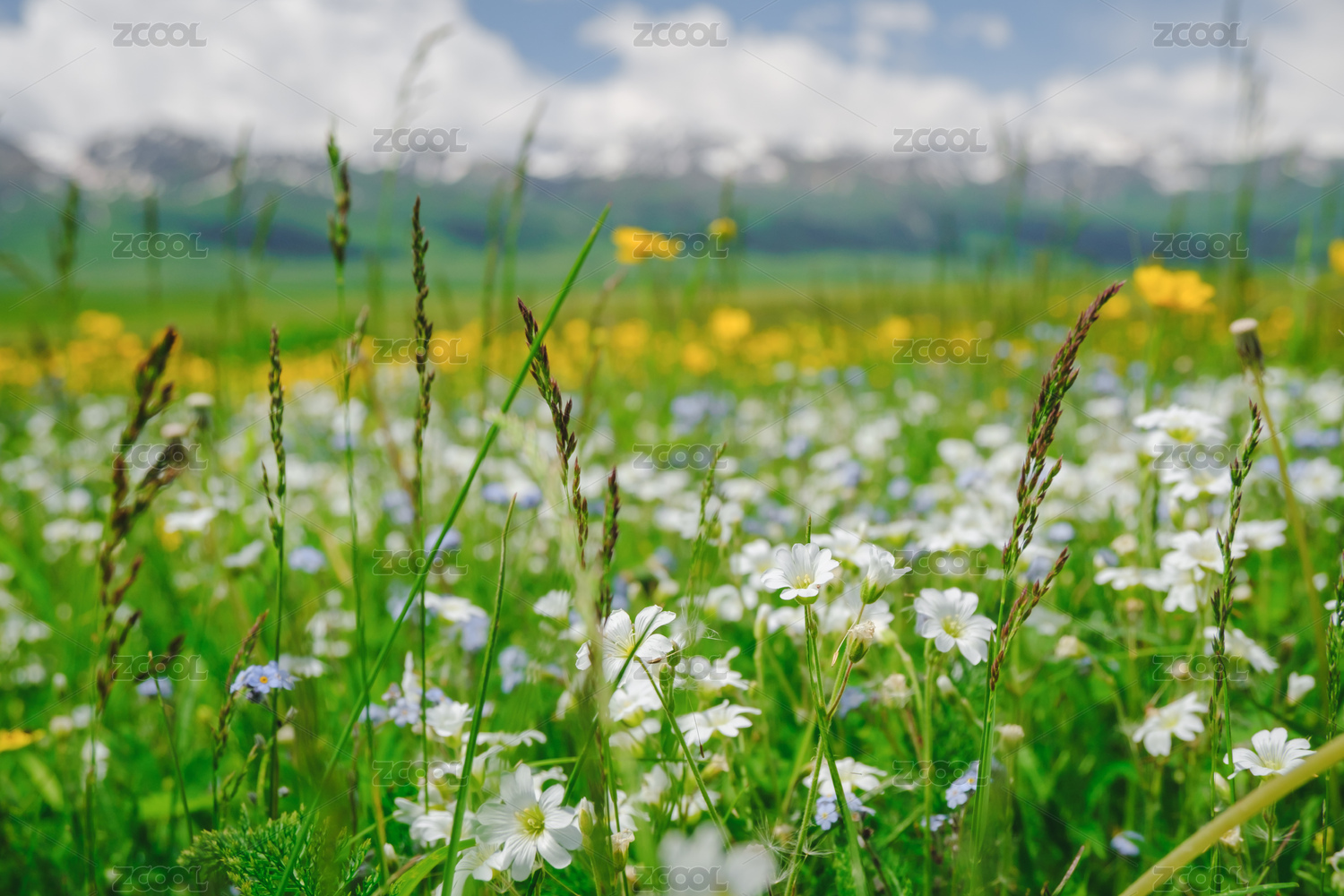 中国新疆伊犁喀拉峻草原鲜花台花丛自然风光