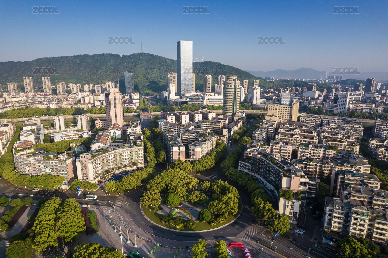 日出时分,诸暨城市风光航拍,诸暨城市广场