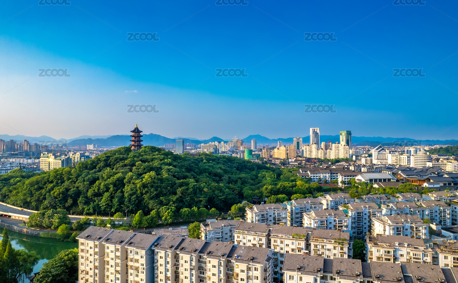 浙江绍兴文笔塔.文笔塔上看绍兴城市风光