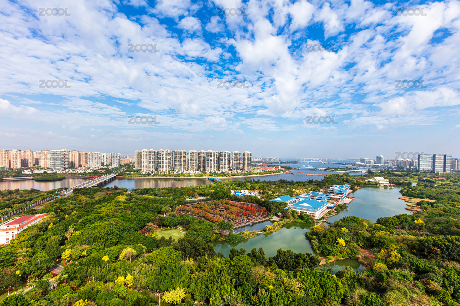 河南省许昌市CBD芙蓉湖公园航拍