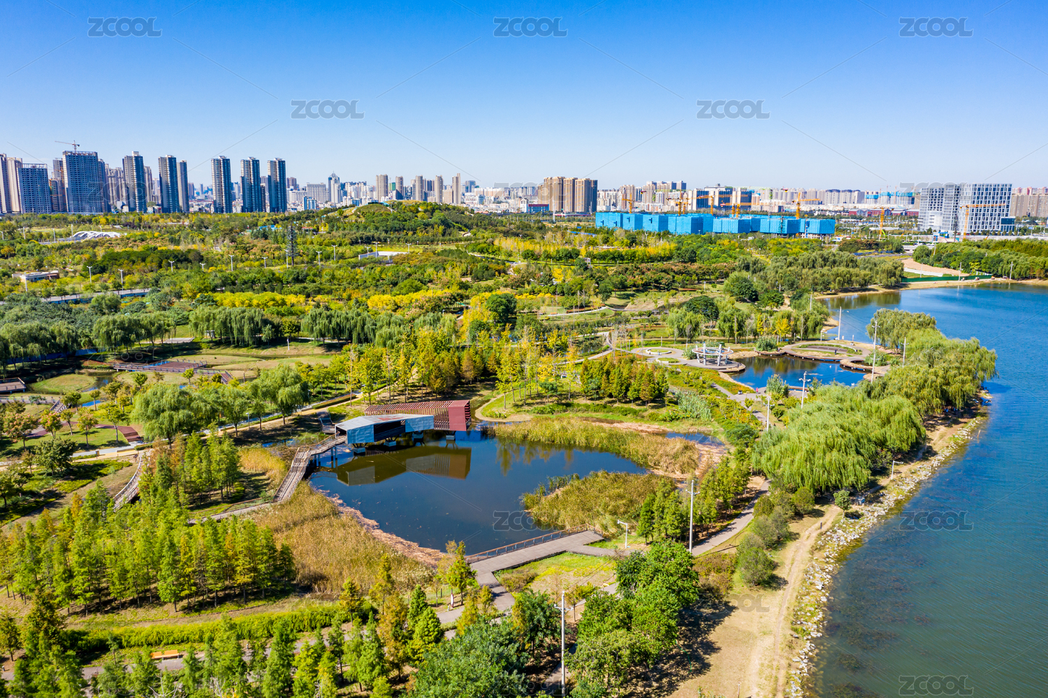 河南,郑州,航拍,高视角,郑州雕塑公园,郑州西流湖,贾鲁河,绿地,公园,城市