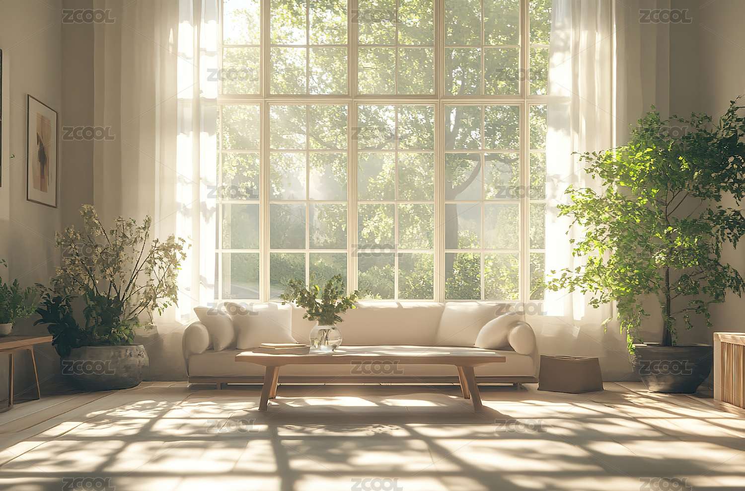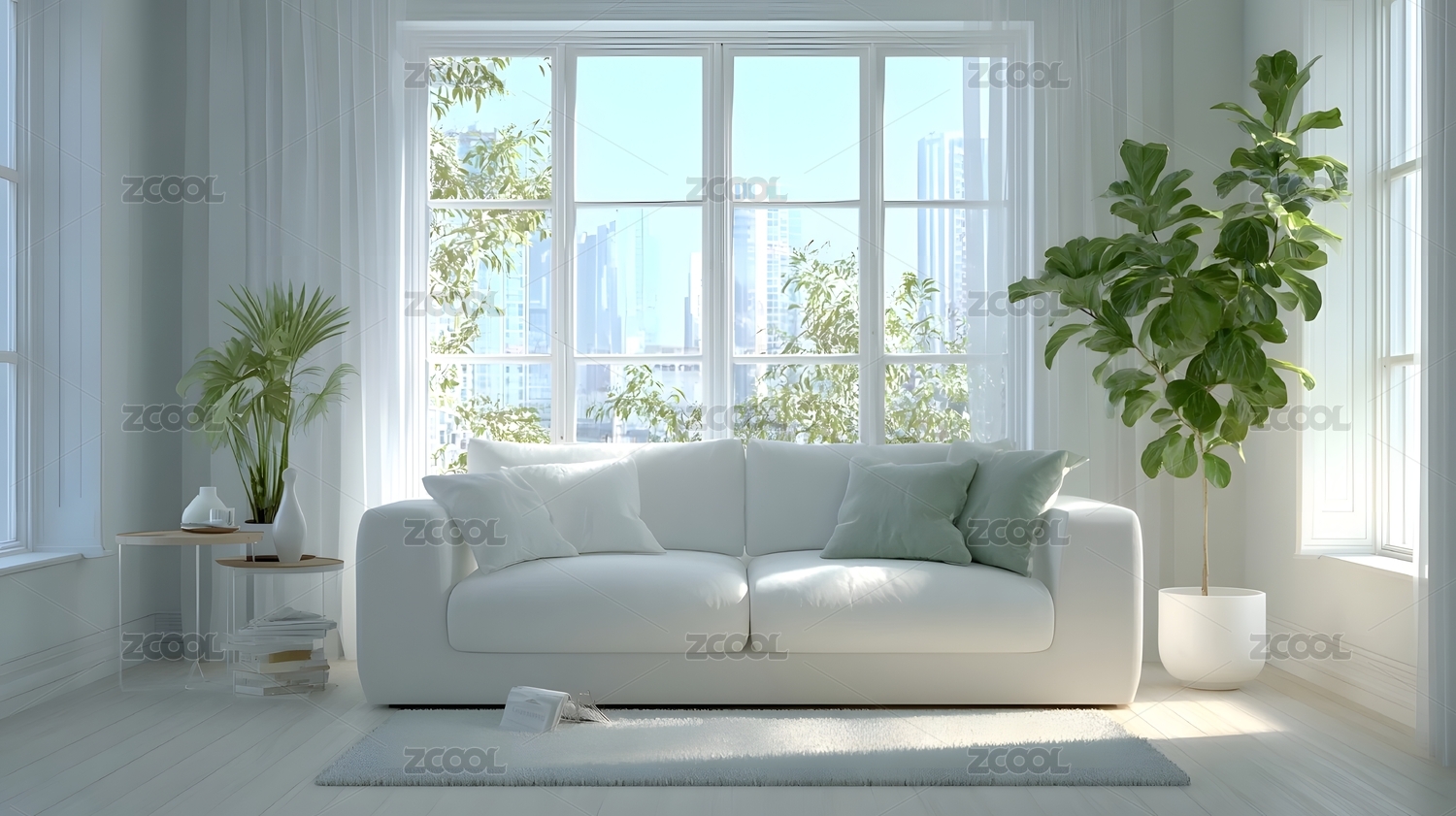 白色起居室客厅沙发窗户地板背景
