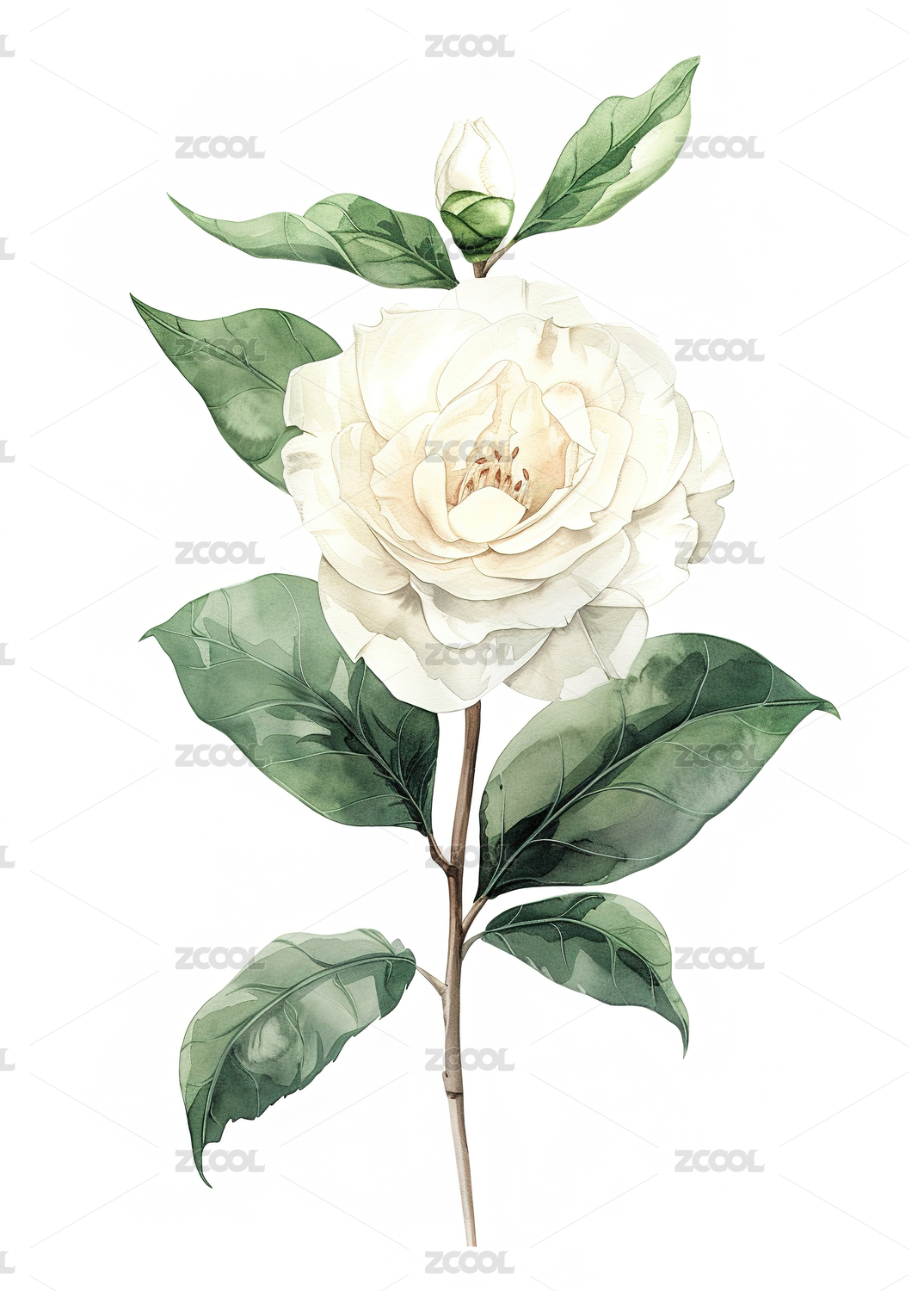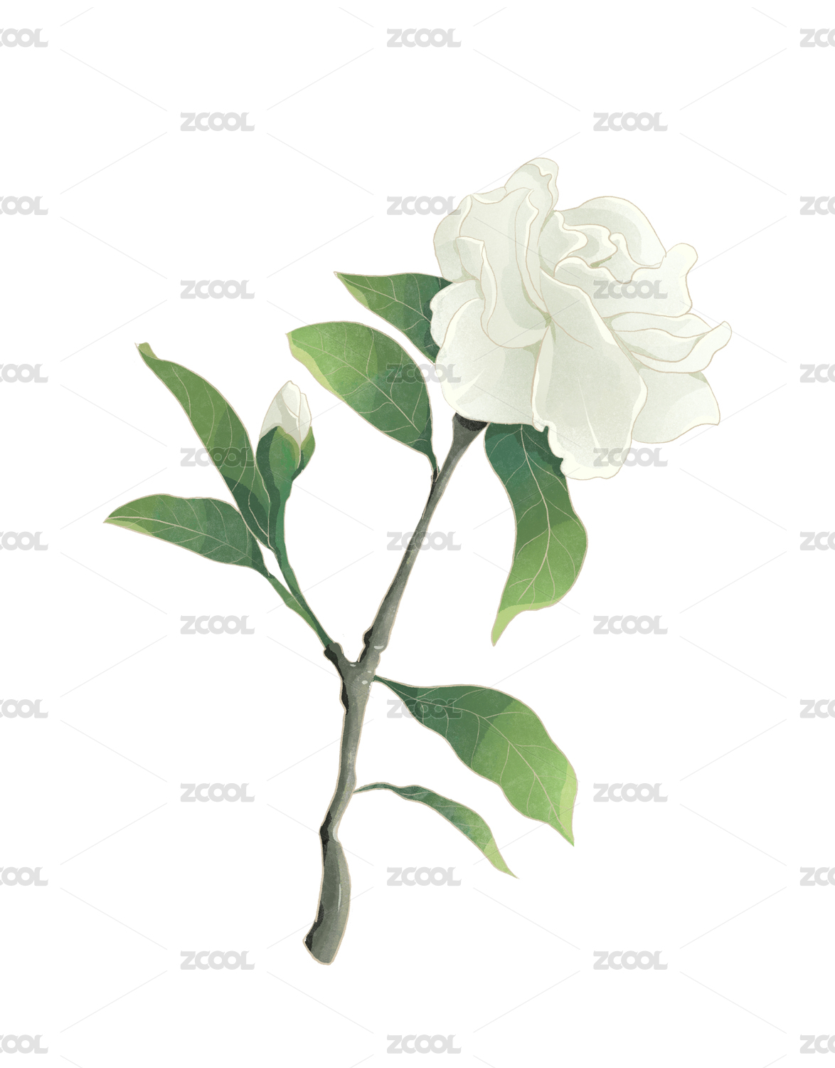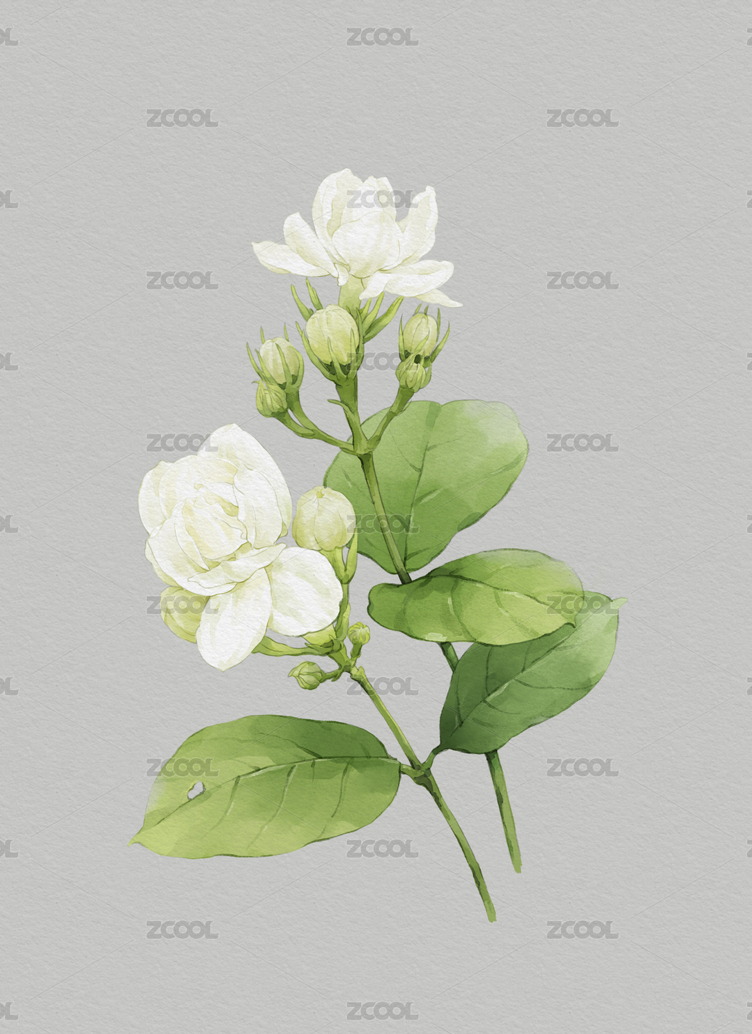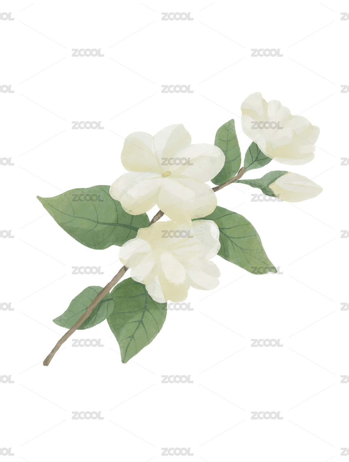 水彩,茉莉花,绘画,插图,白色,插画,叶子,植物,清新,特写