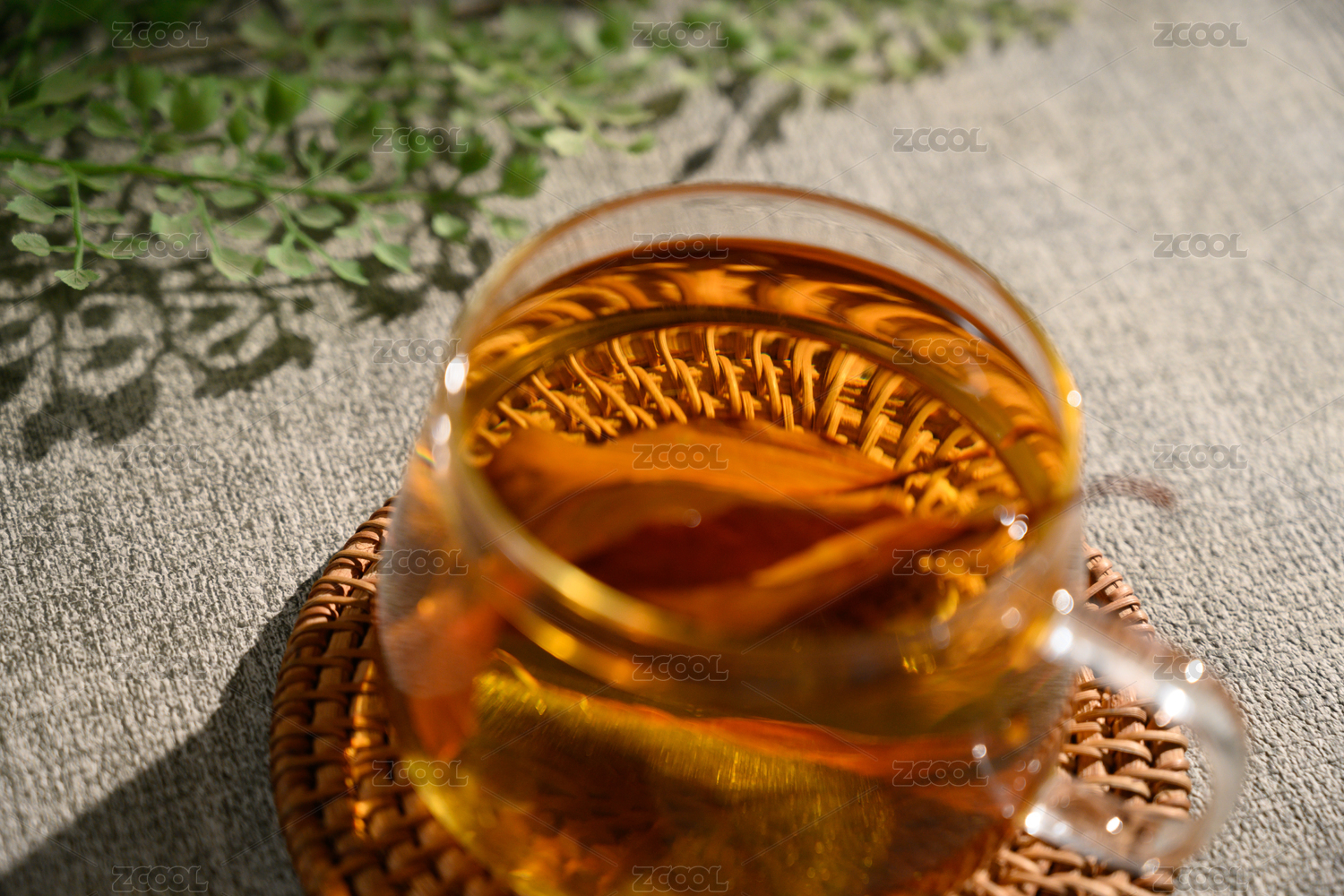 桌面上的杯子里的甘甜可口的秦皮茶