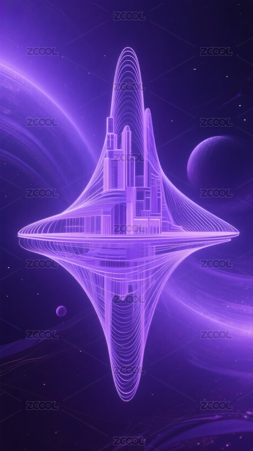 蓝紫色科幻太空宇宙云层行星星球飞船飞行器