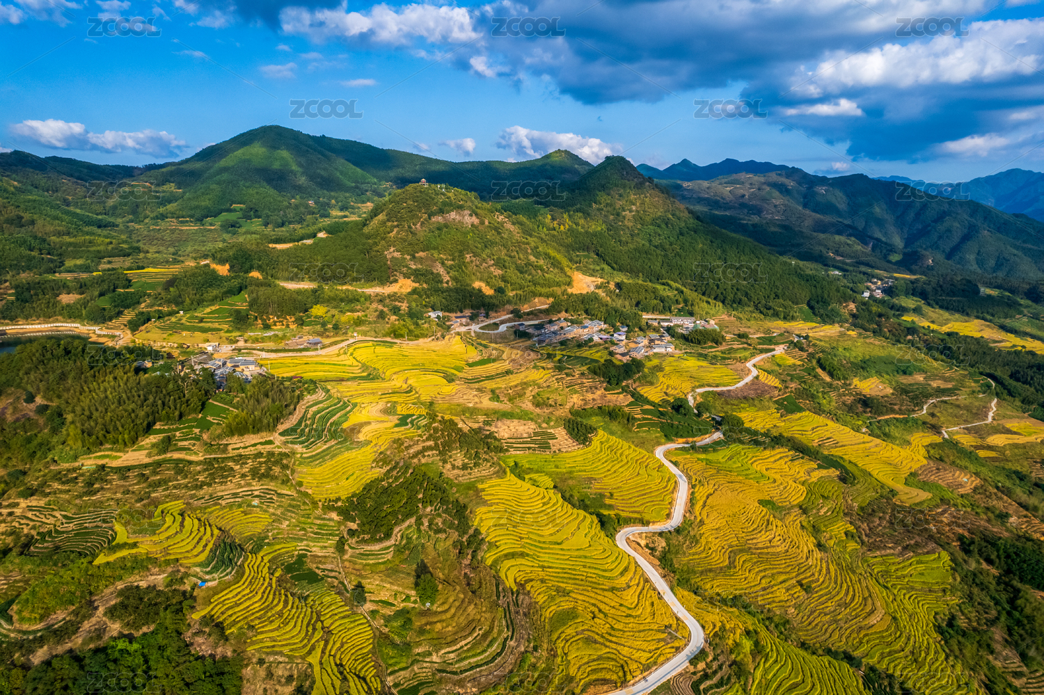 江西赣州崇义县上堡梯田稻谷金黄绚烂如画