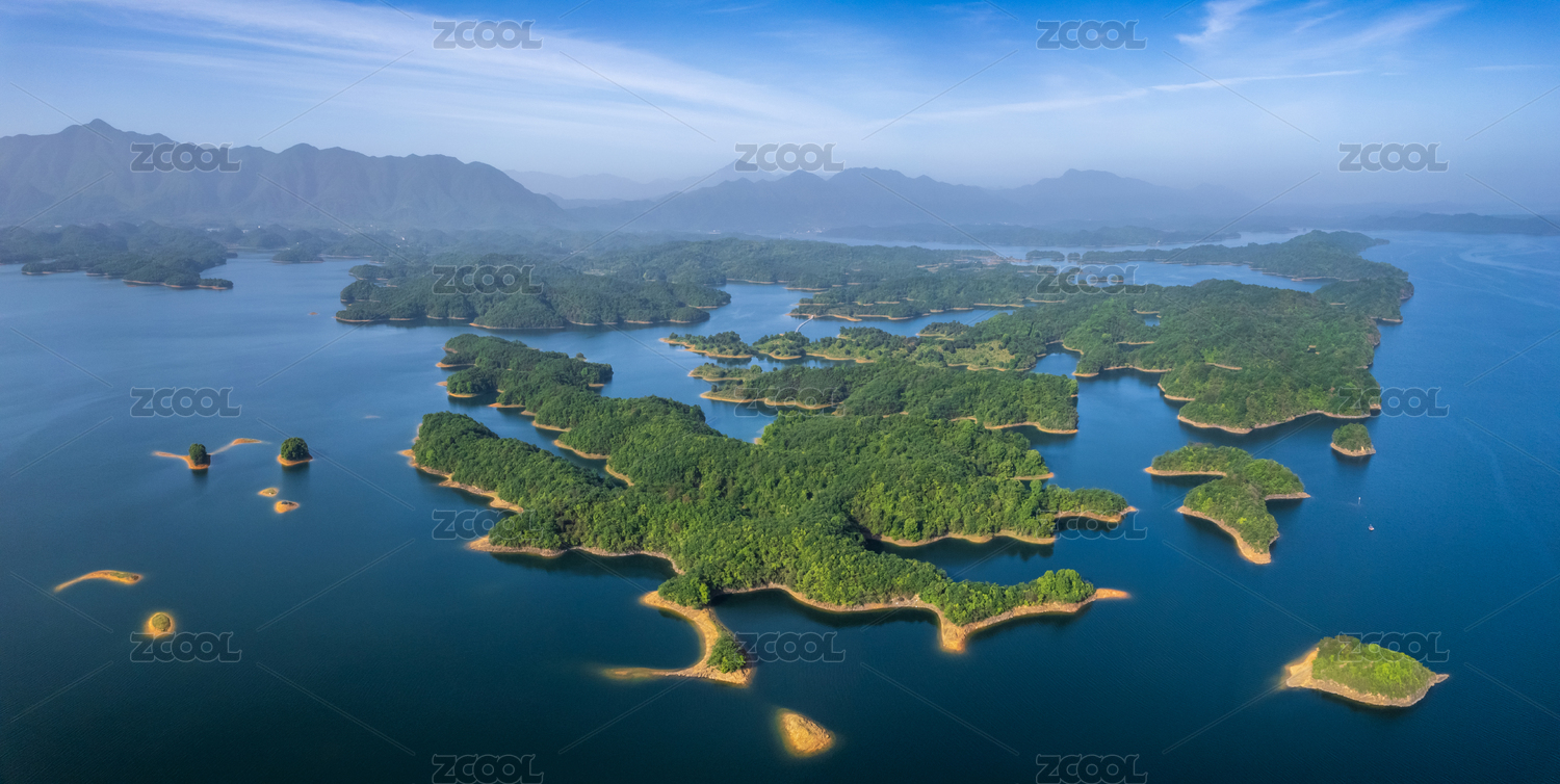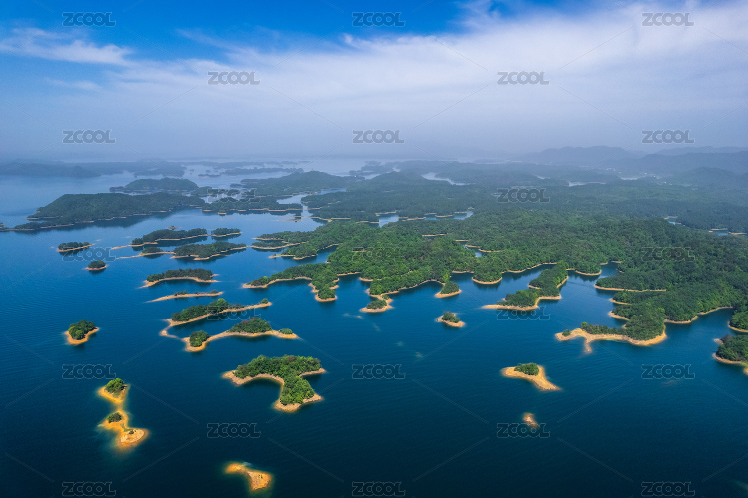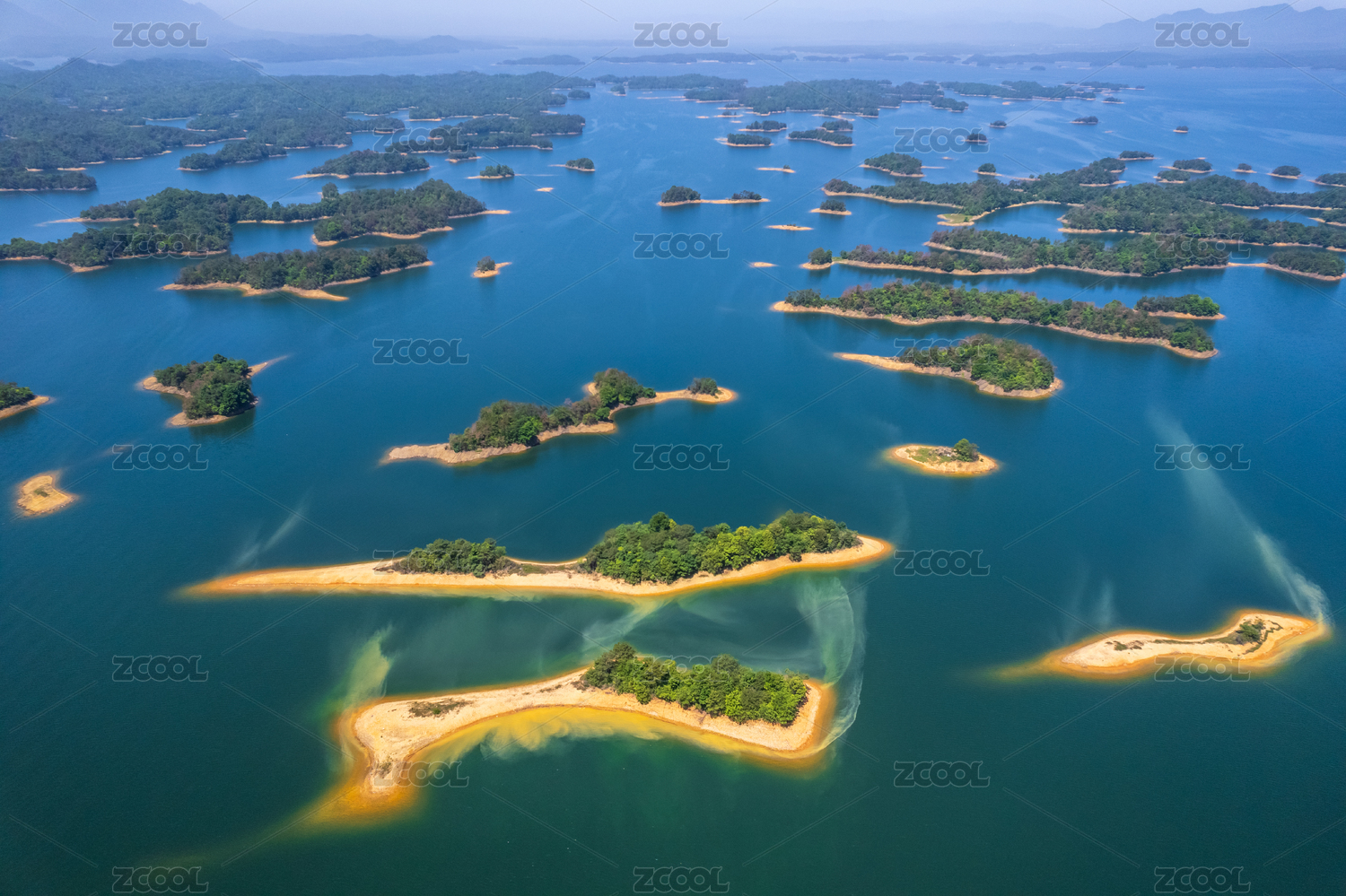 俯瞰柘林湖千岛湖风光,中国江西九江