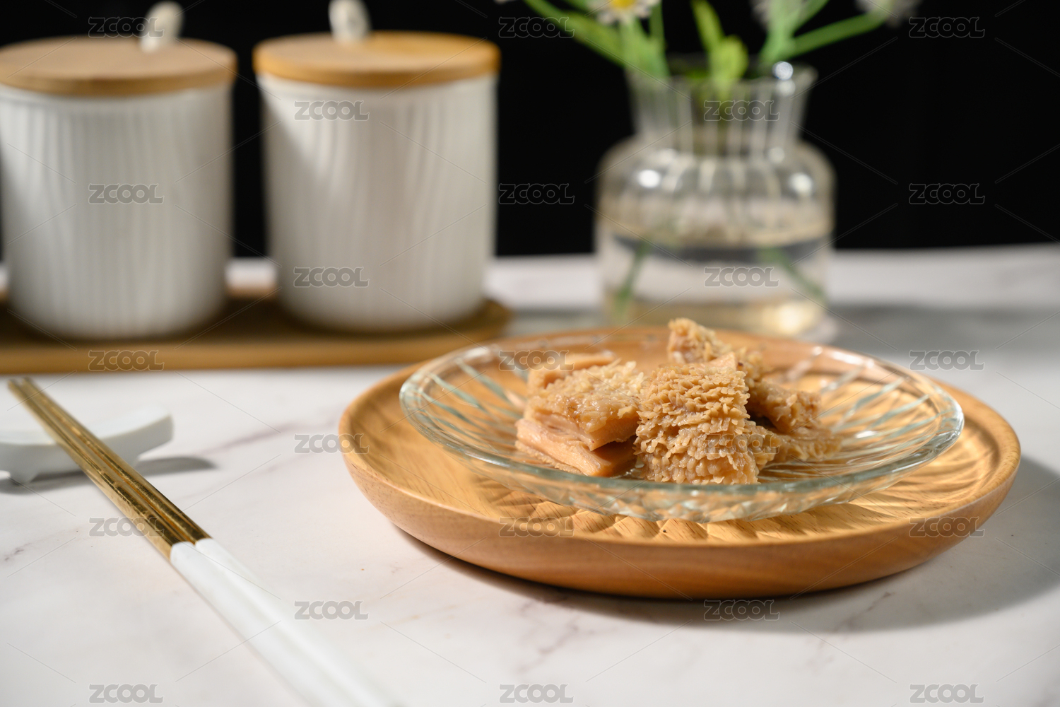 桌面上的盘子里的美味可口的面筋