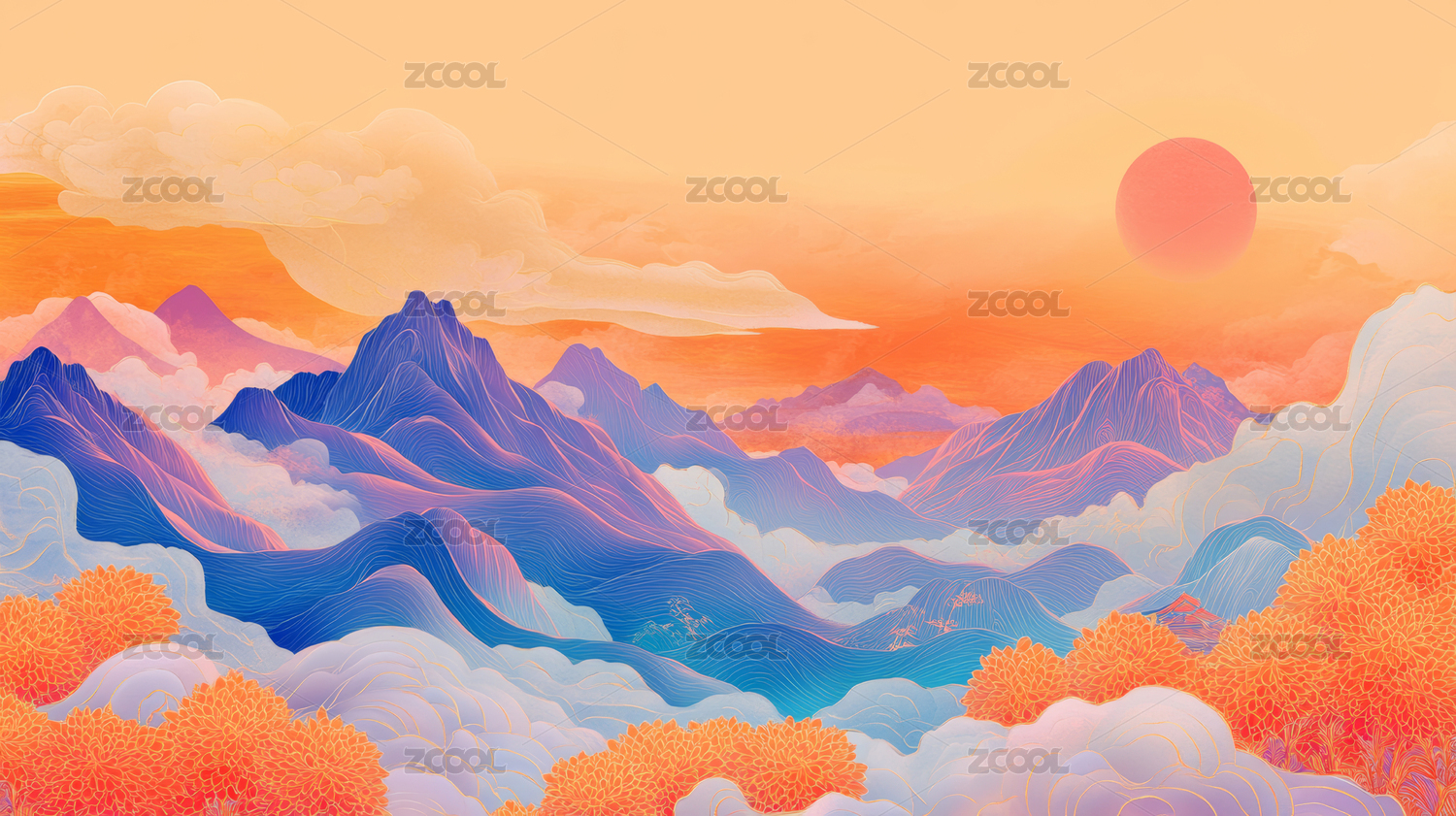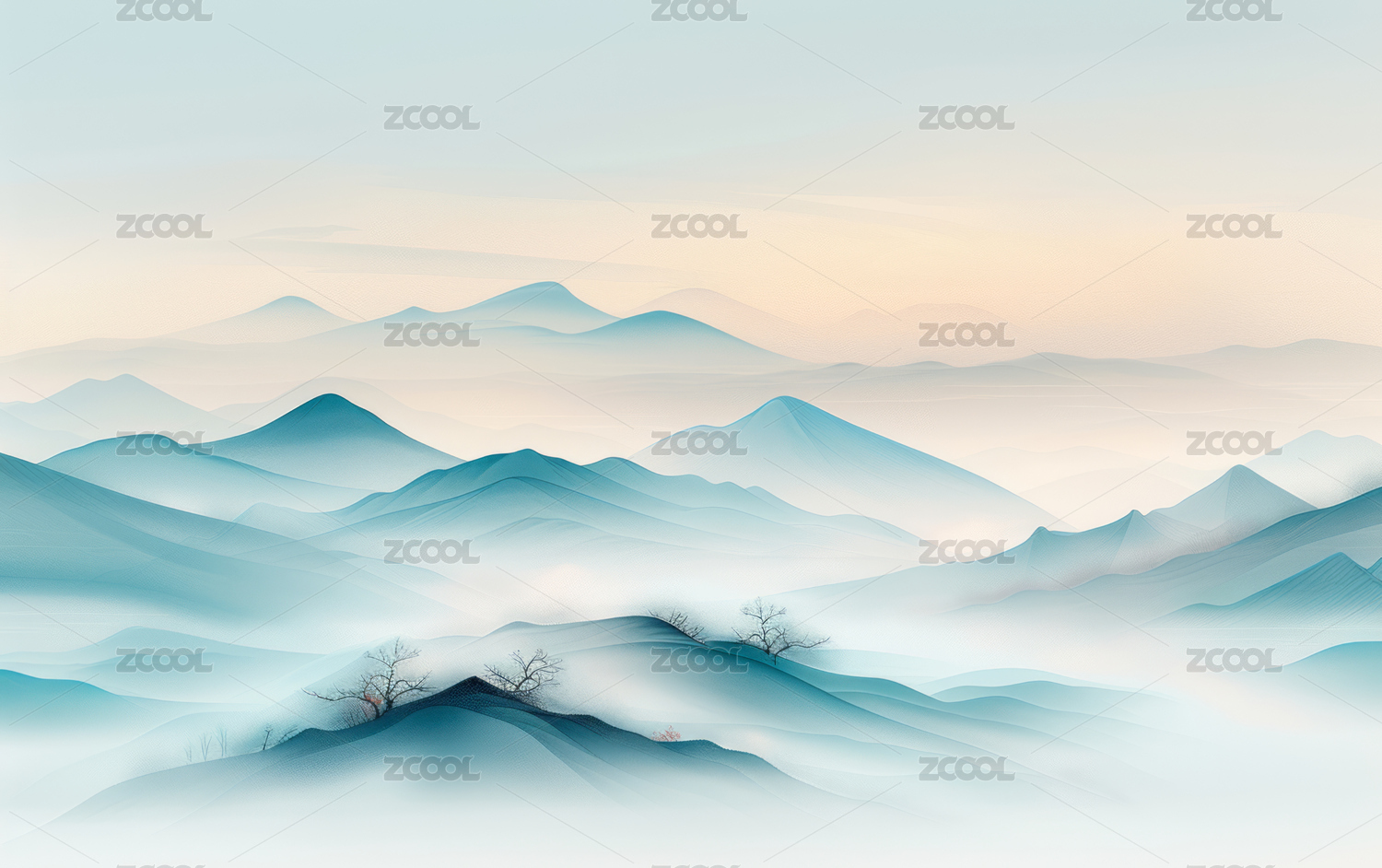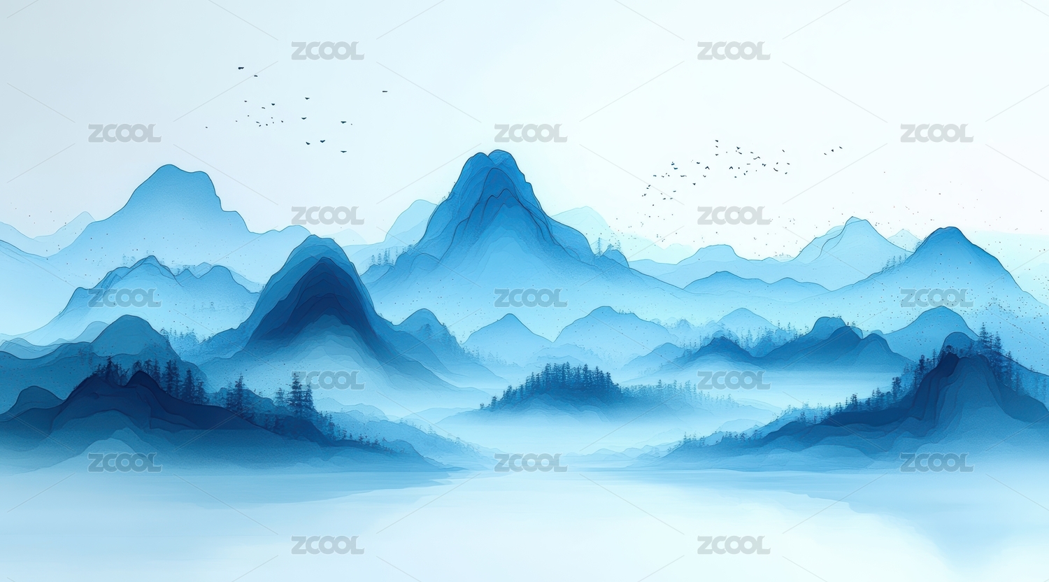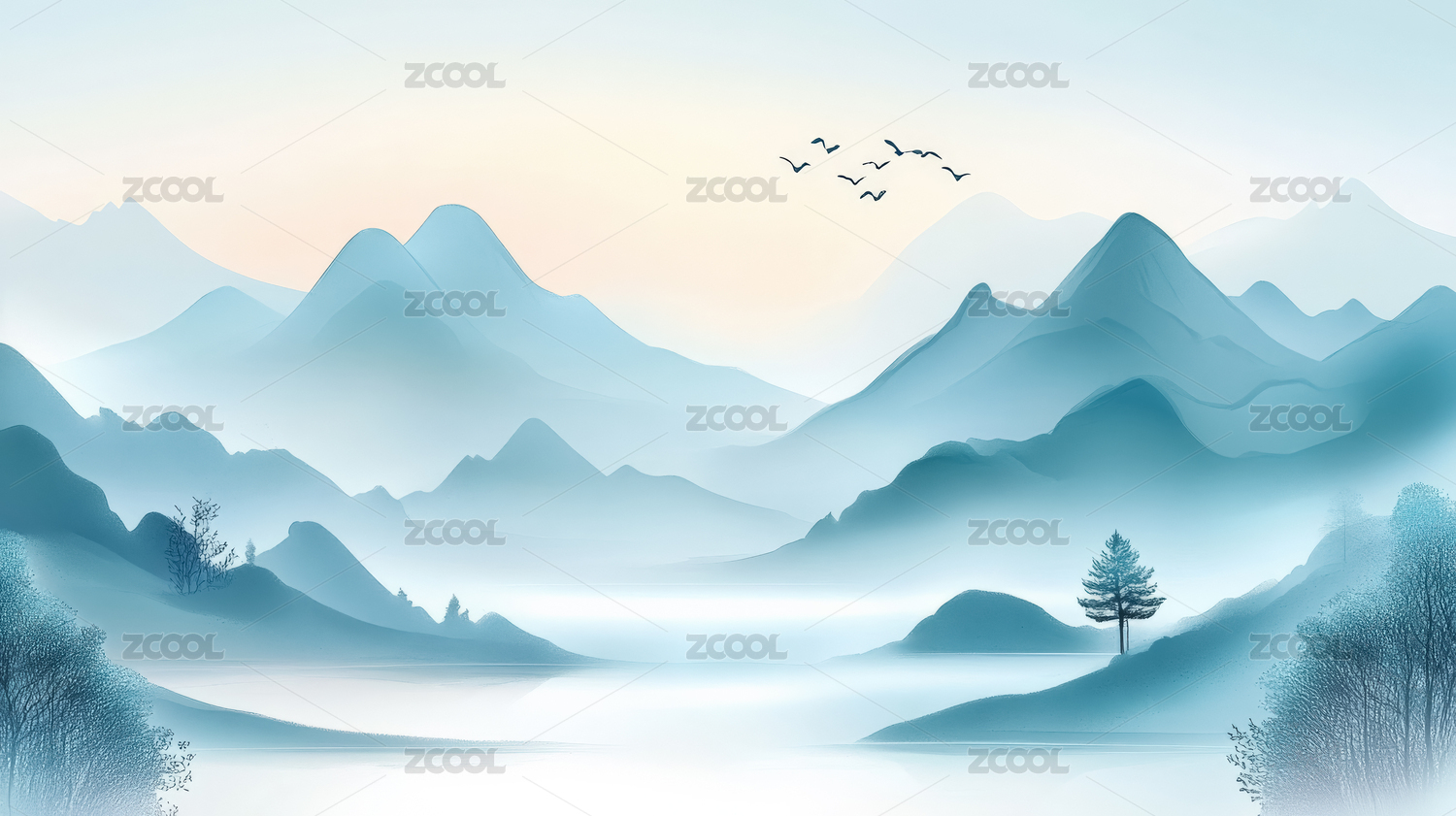新国风古风国潮青绿山水画水墨传统背景壁纸