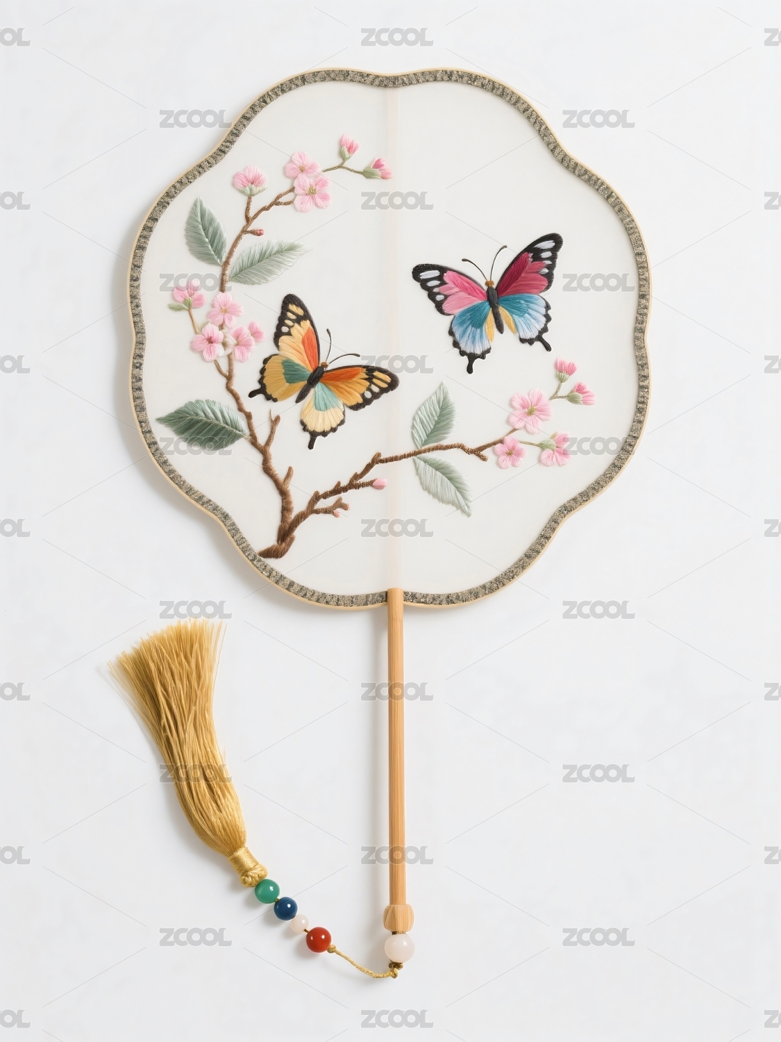 蝶舞花枝团扇图案展示