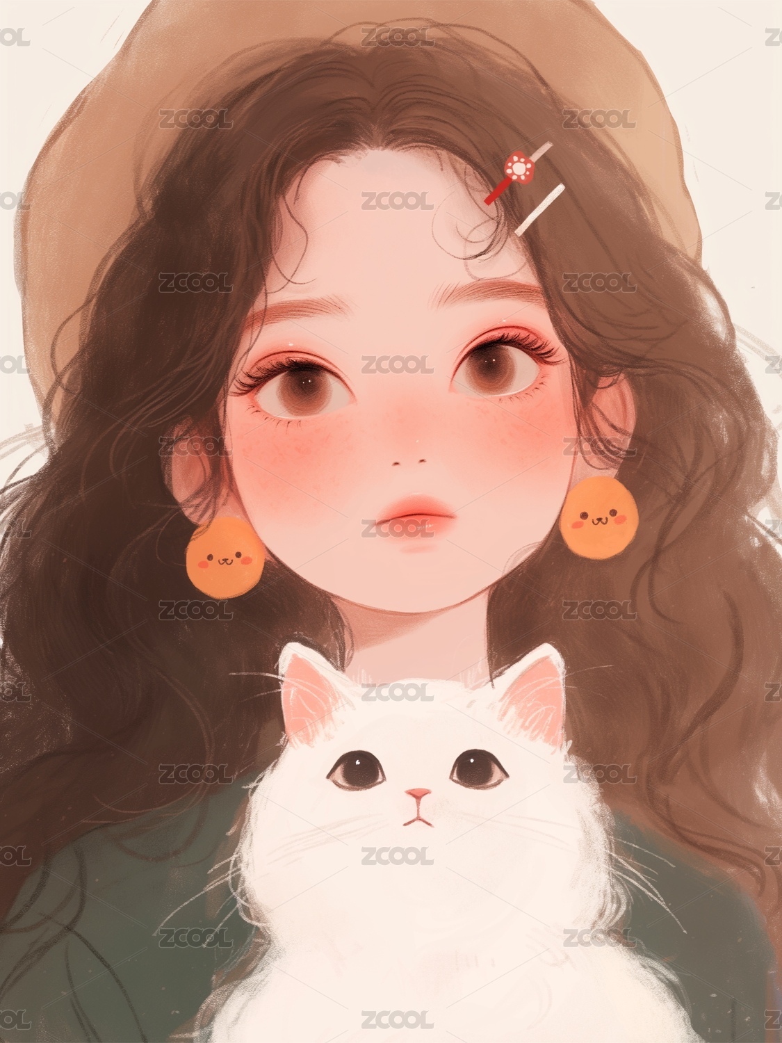 薯片,耳环,女孩,猫咪,插画,可爱