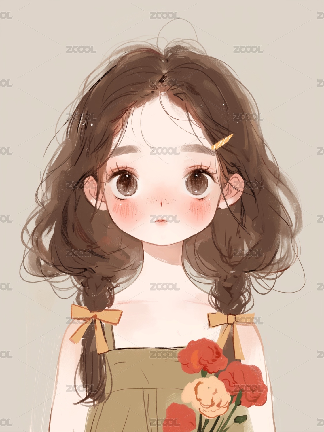 手拿康乃馨的女孩