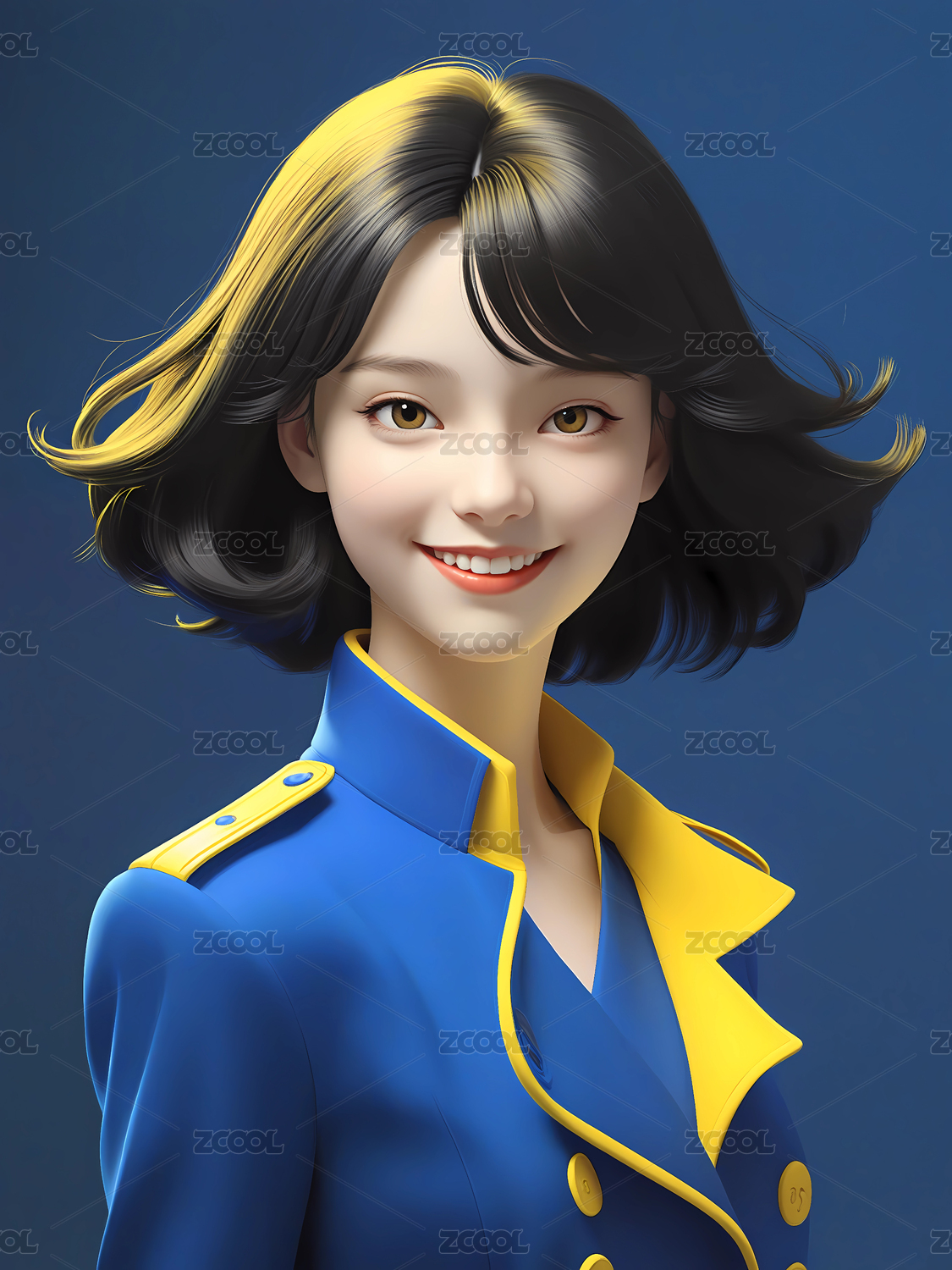 3D渲染卡通笑容广告美女模特