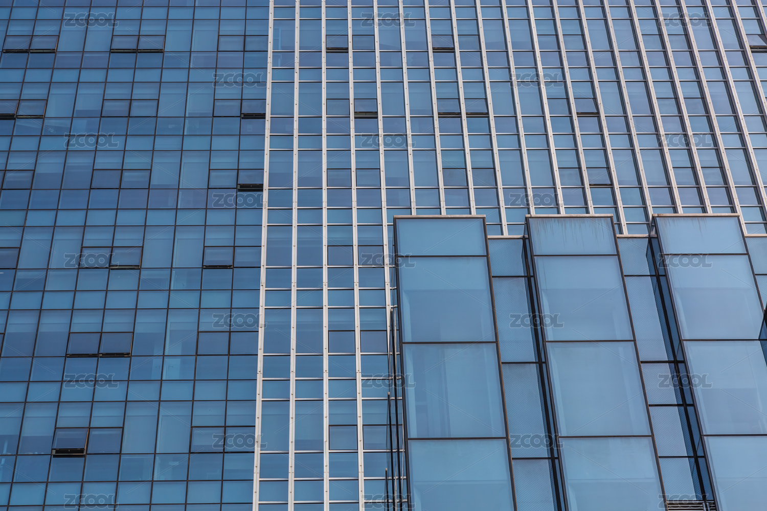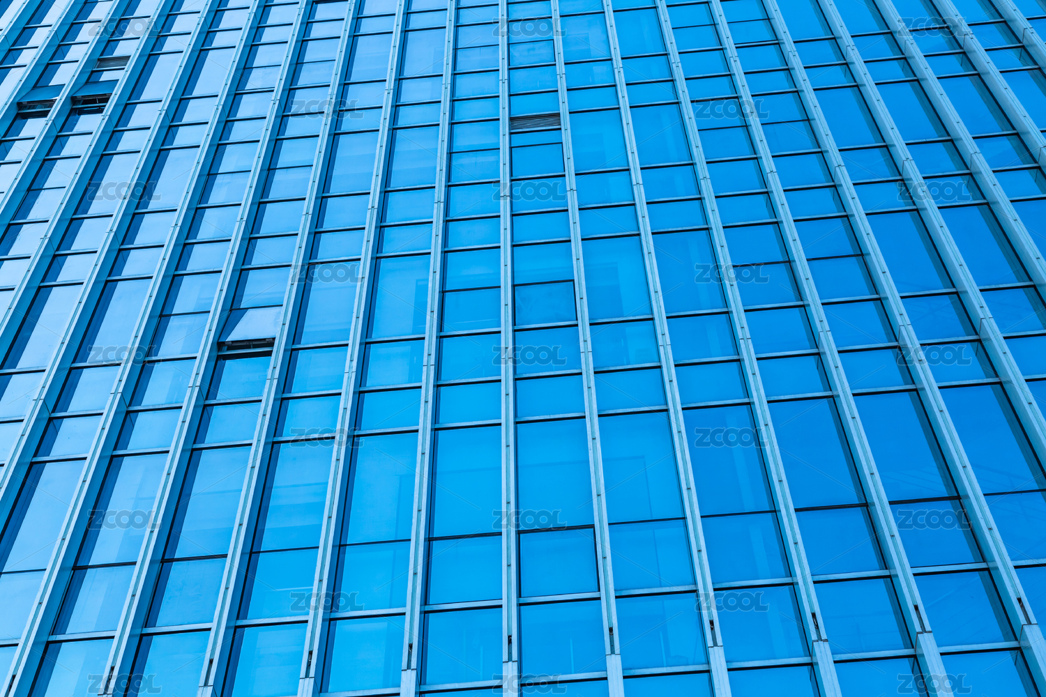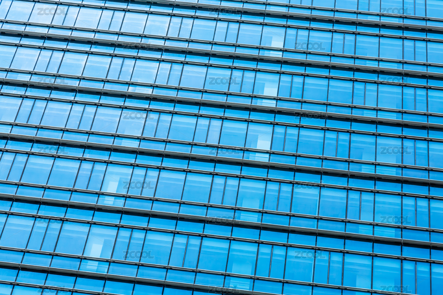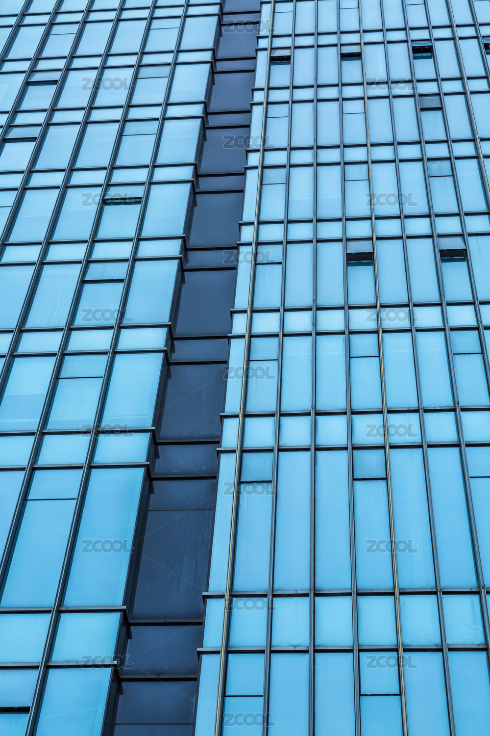 抽象的建筑摩天大楼的蓝色玻璃墙