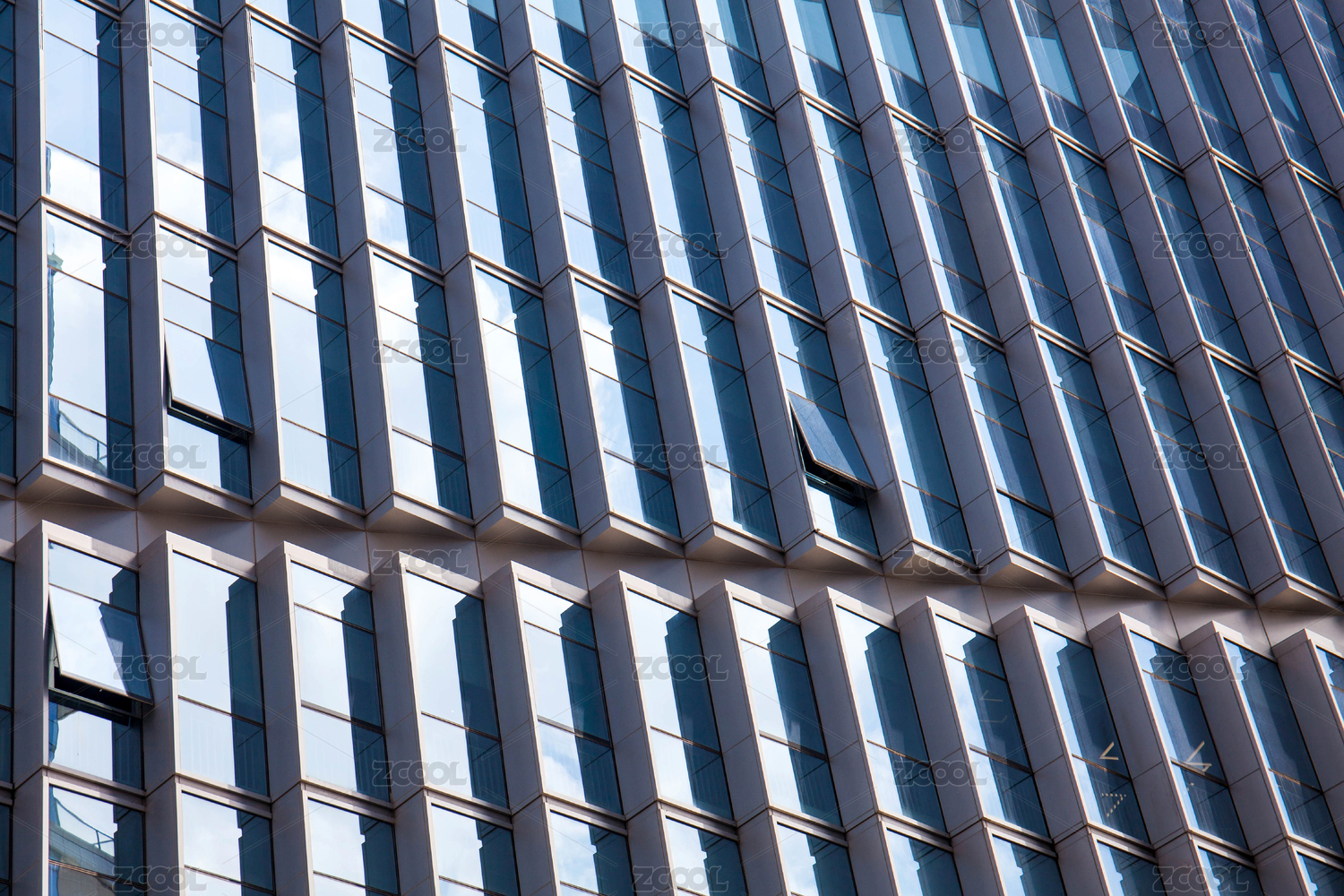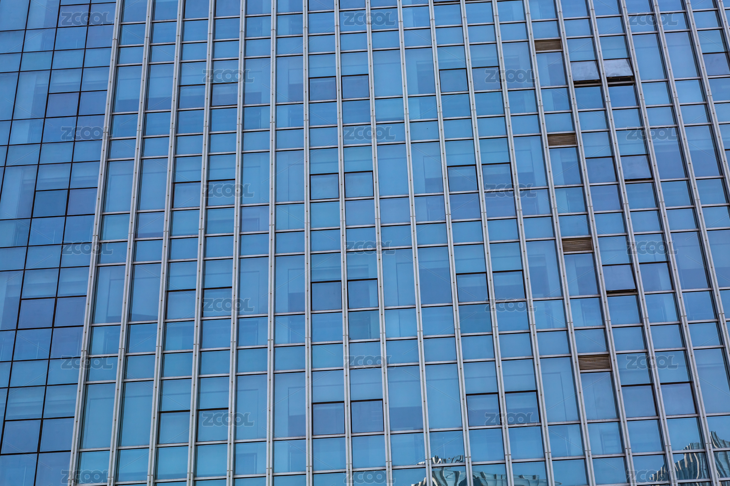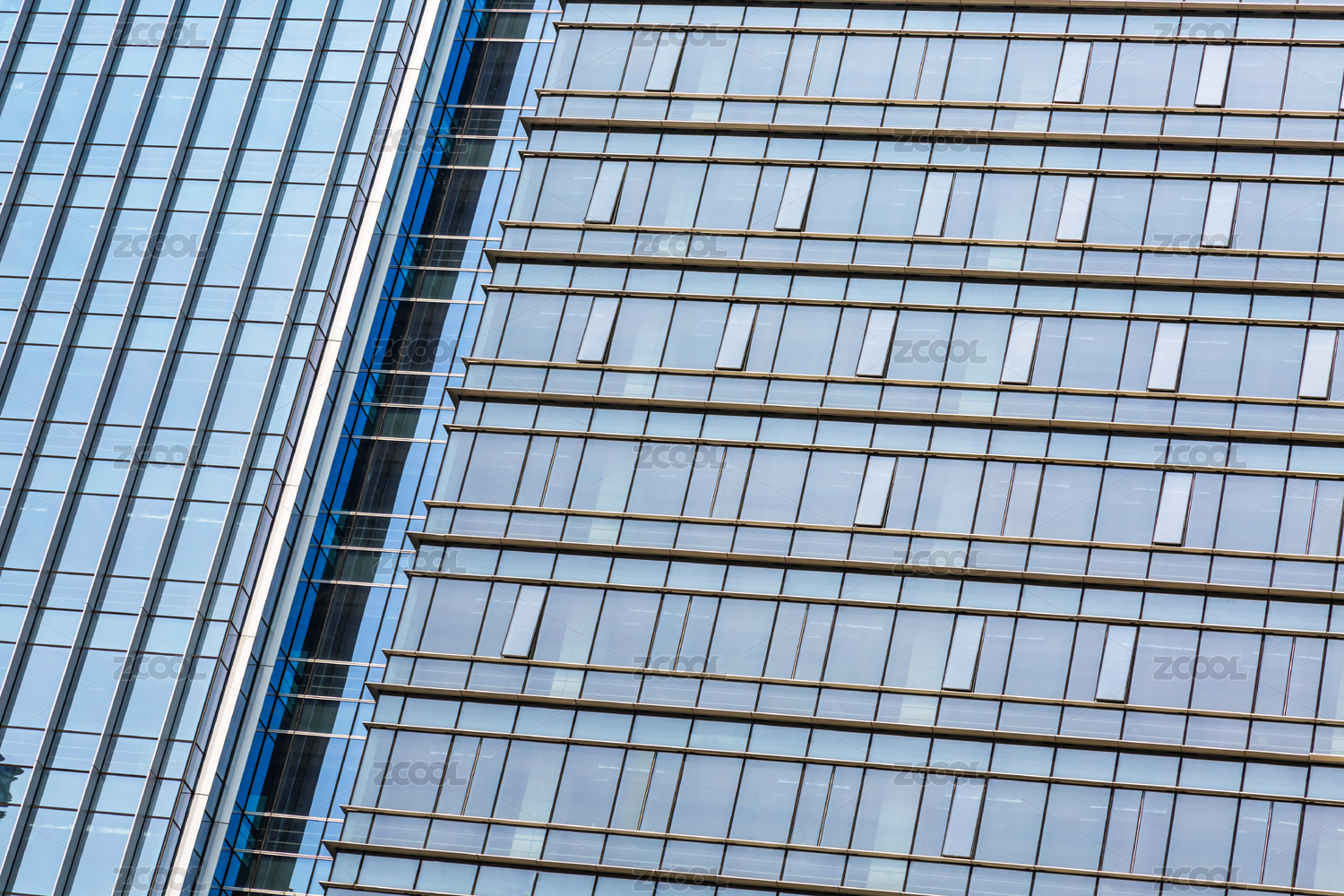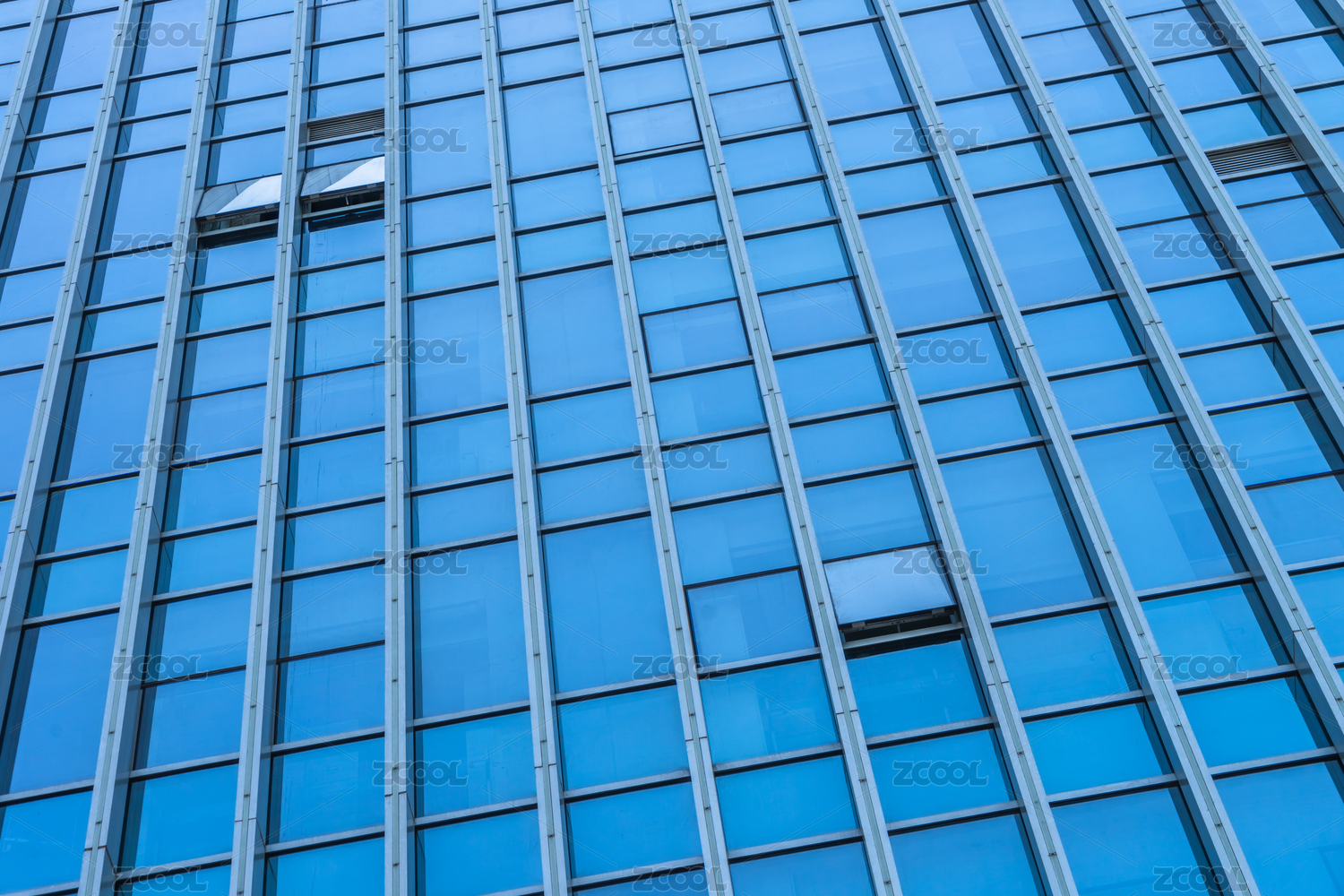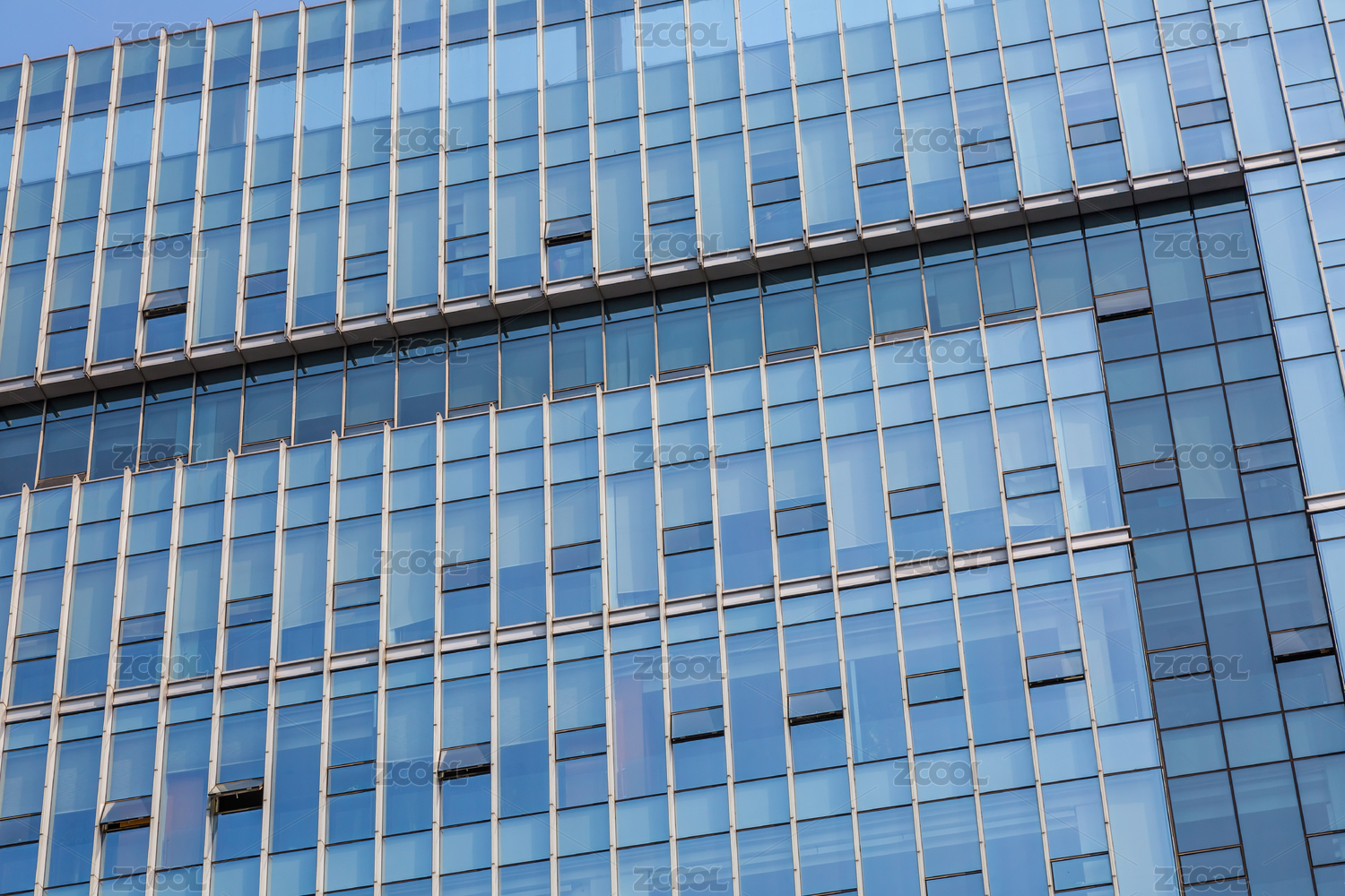 抽象的建筑摩天大楼的蓝色玻璃墙