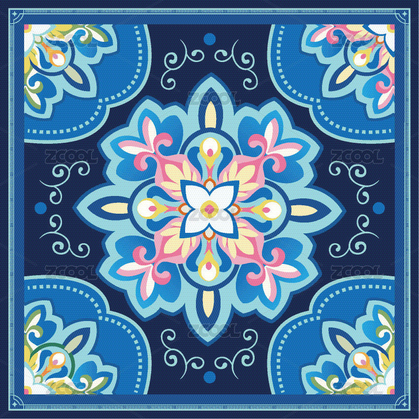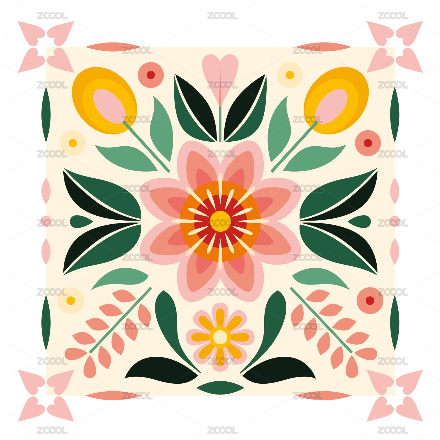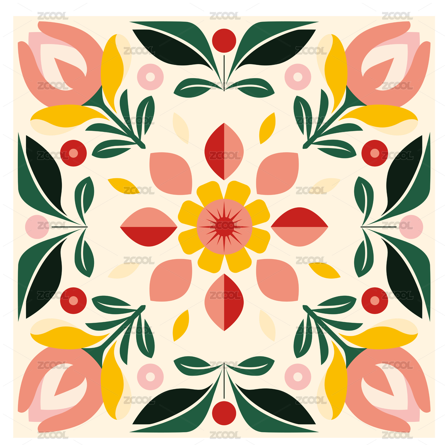 唐朝敦煌牡丹团花莲花卷草纹藻井花纹中国纹样插画