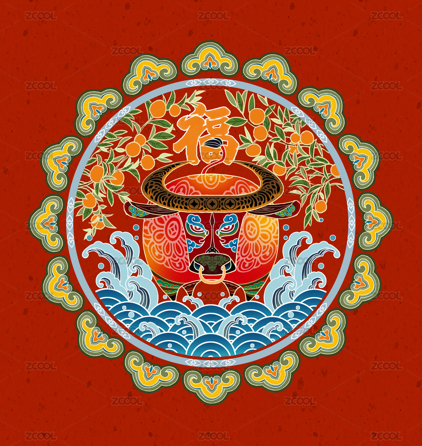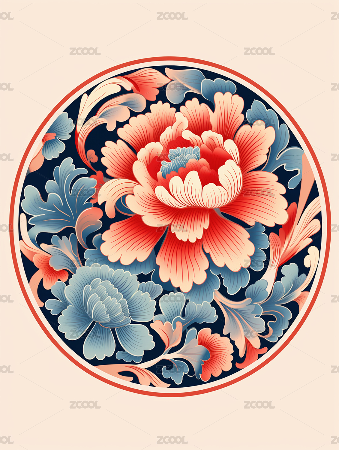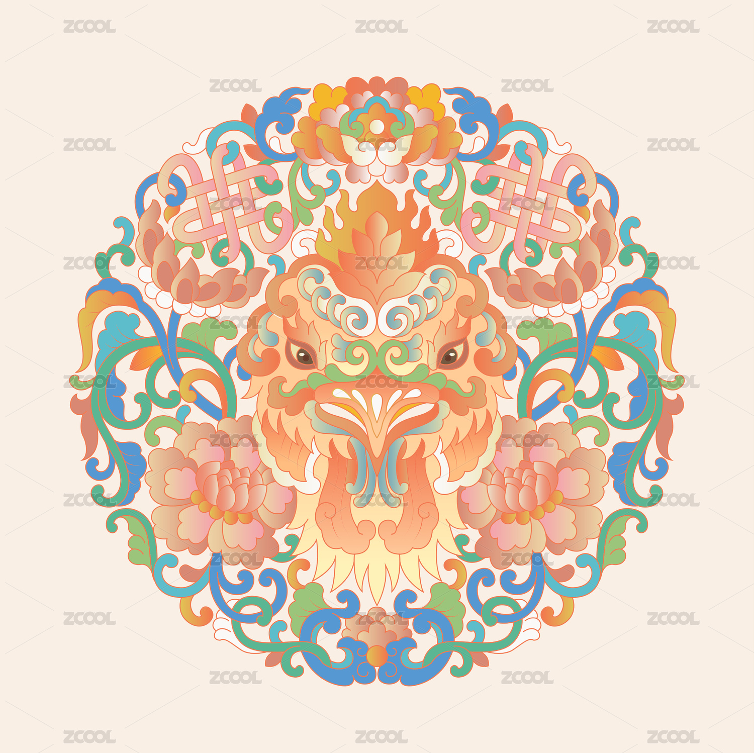 中国传统的蝙蝠装饰图案-彩色复古花纹