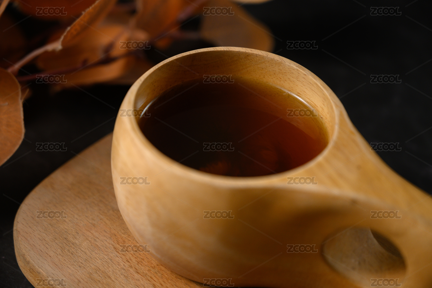 桌面上的盘子里的美味可口的咖啡果皮茶