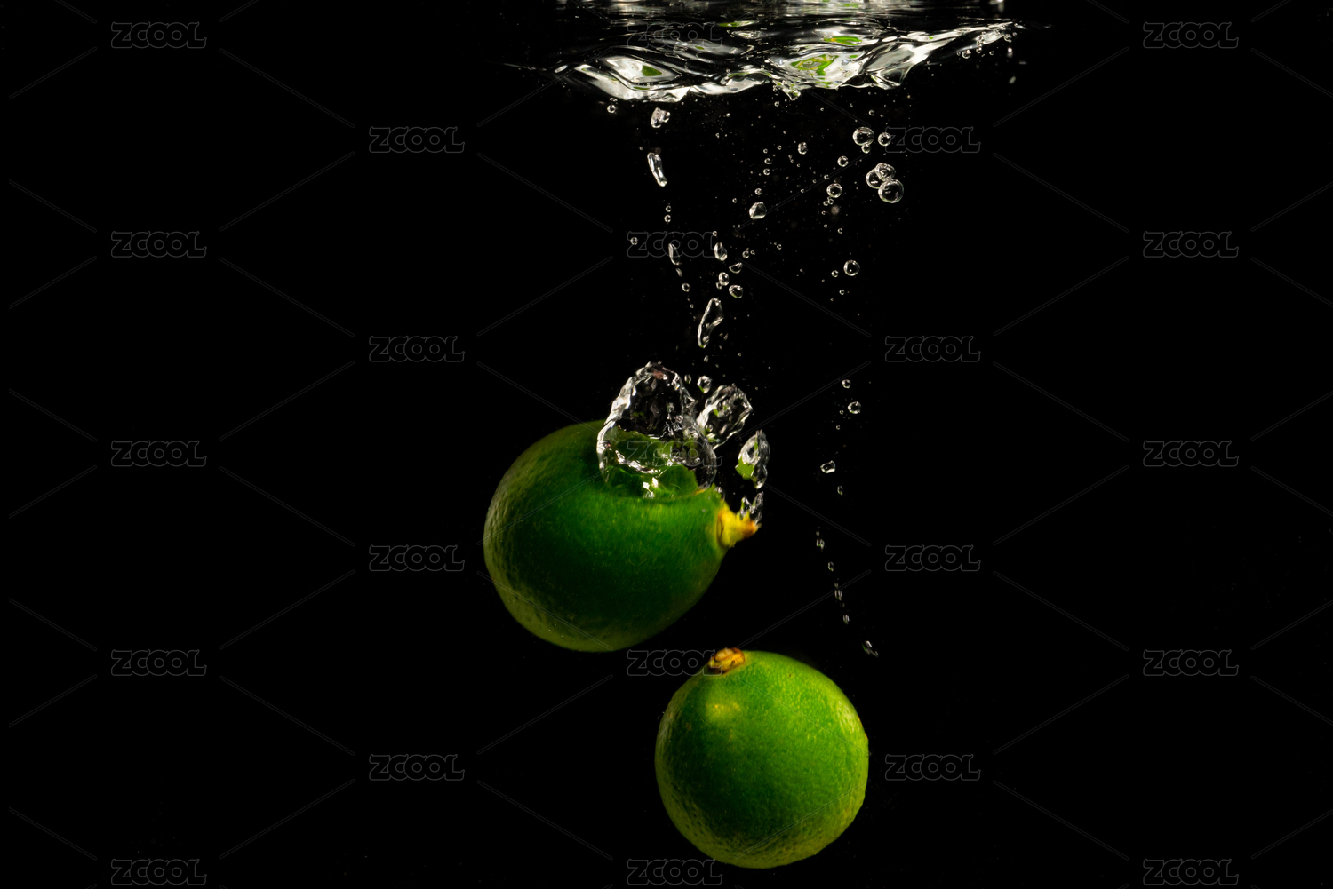 落入水中的绿色青柠