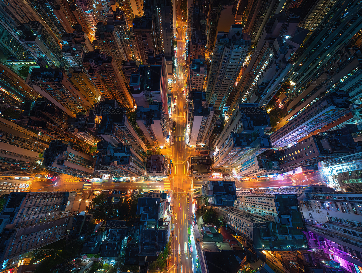 香港,中环,街道,俯拍,密集,建筑,夜景,夜晚,道路,维多利亚港