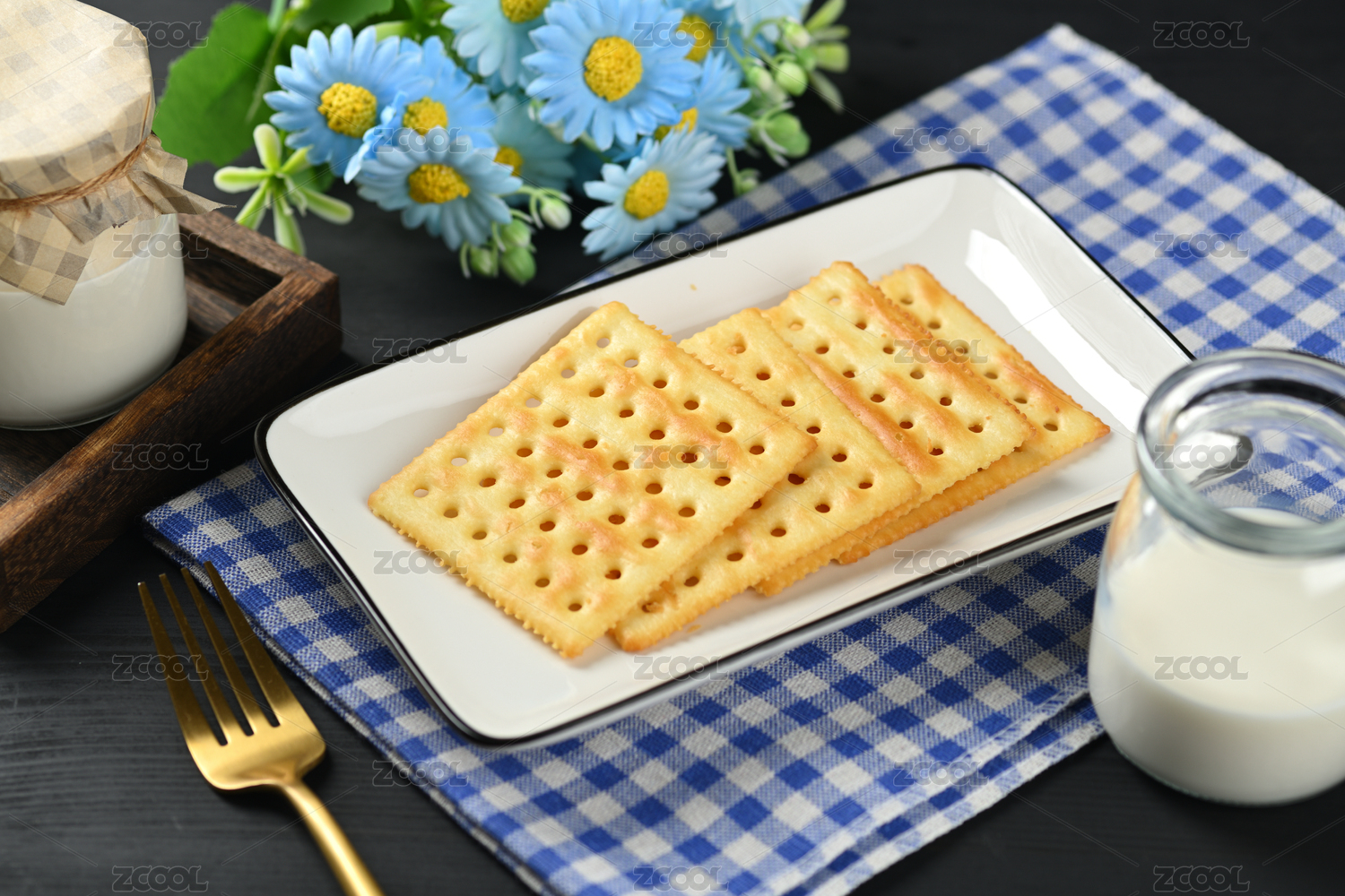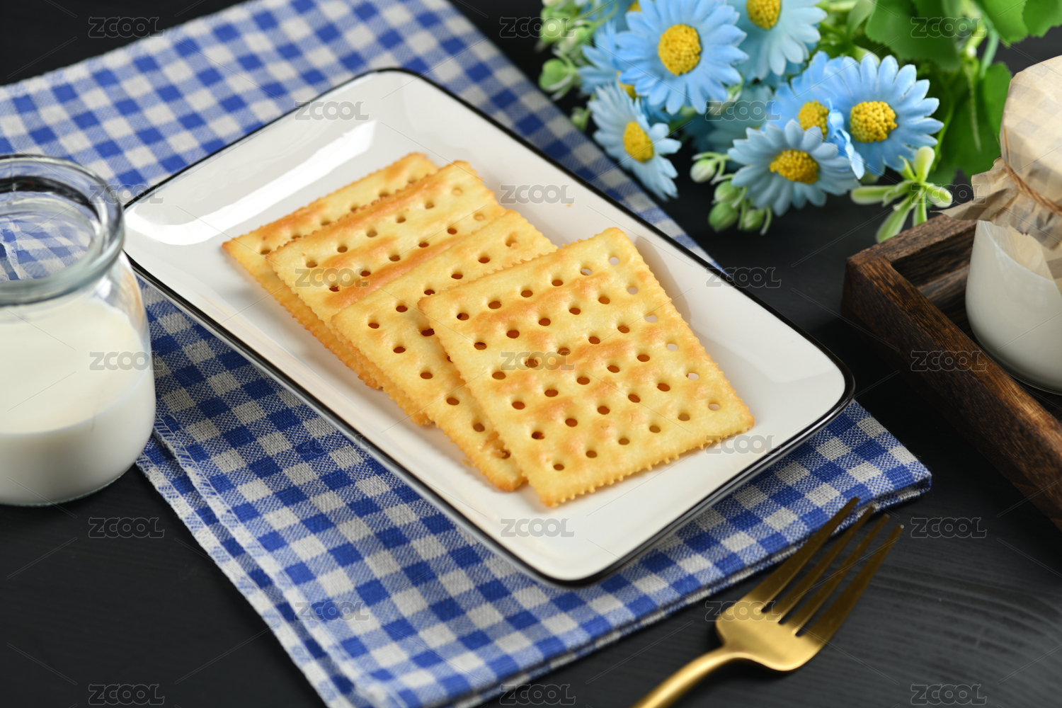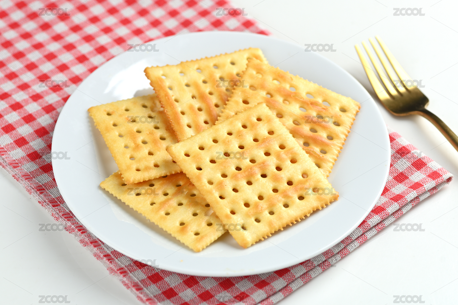 白色陶瓷盘子上的梳打饼干