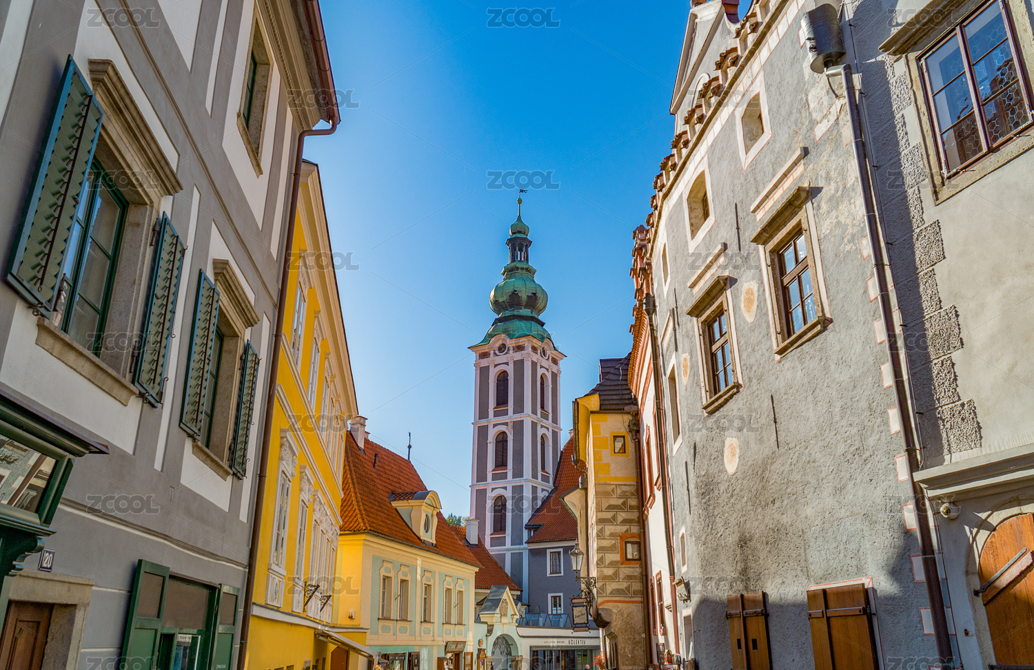欧洲捷克克鲁姆洛夫小镇教堂近景