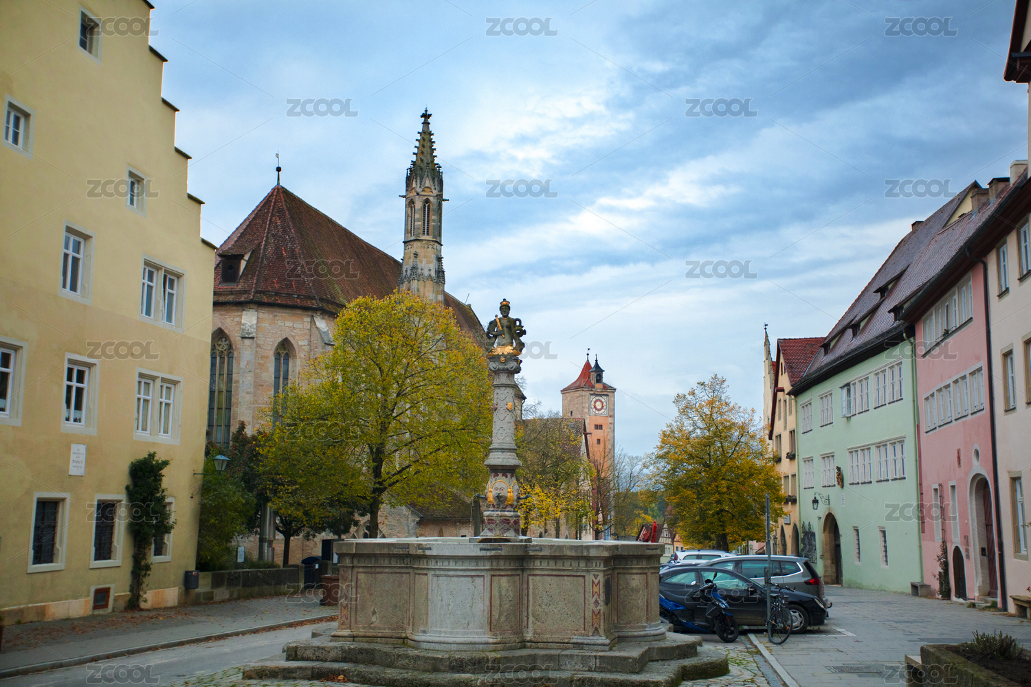 德国罗腾堡童话镇古老的街道上市集的广场