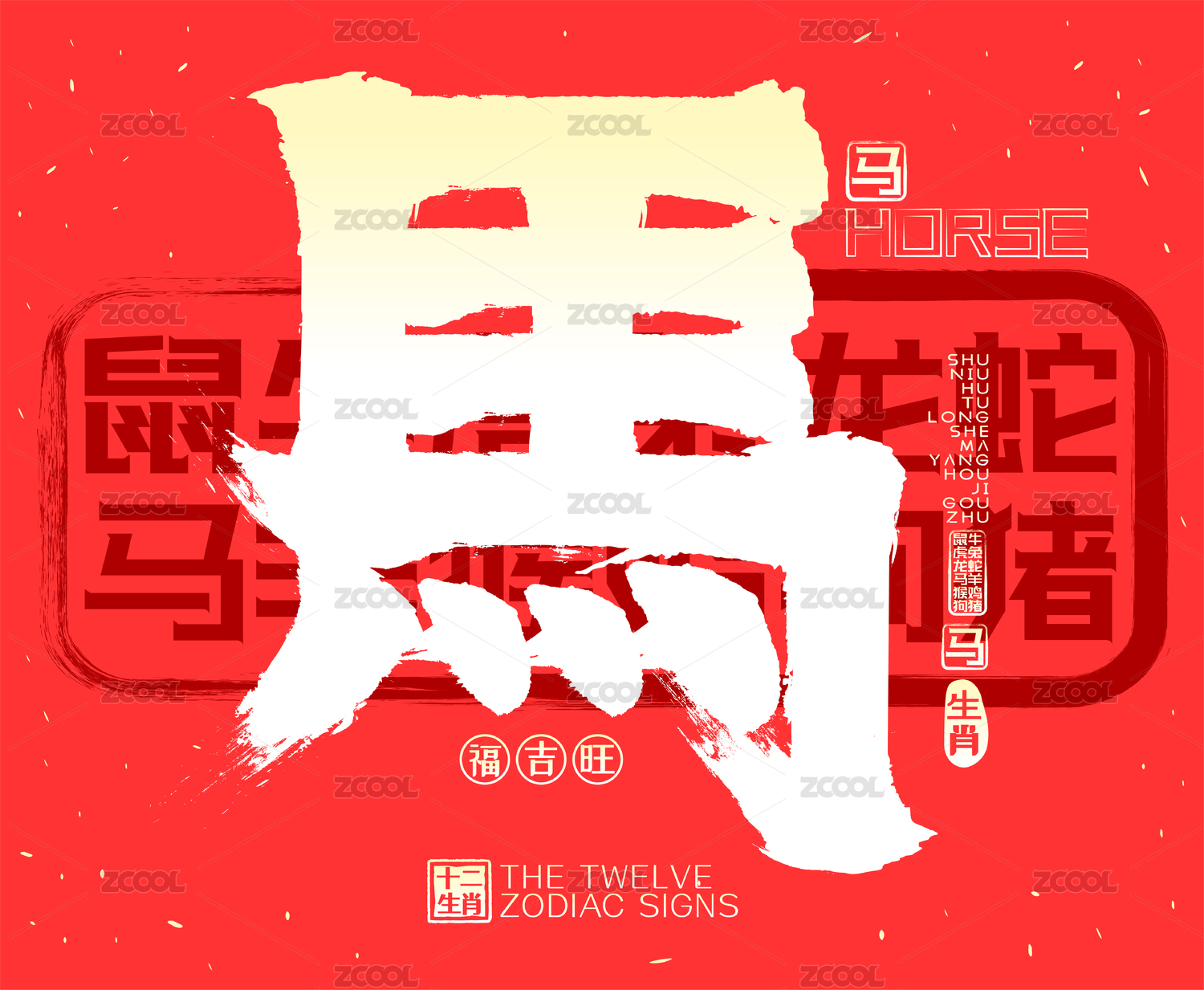 十二生肖马金色发光喜庆中国风矢量毛笔字