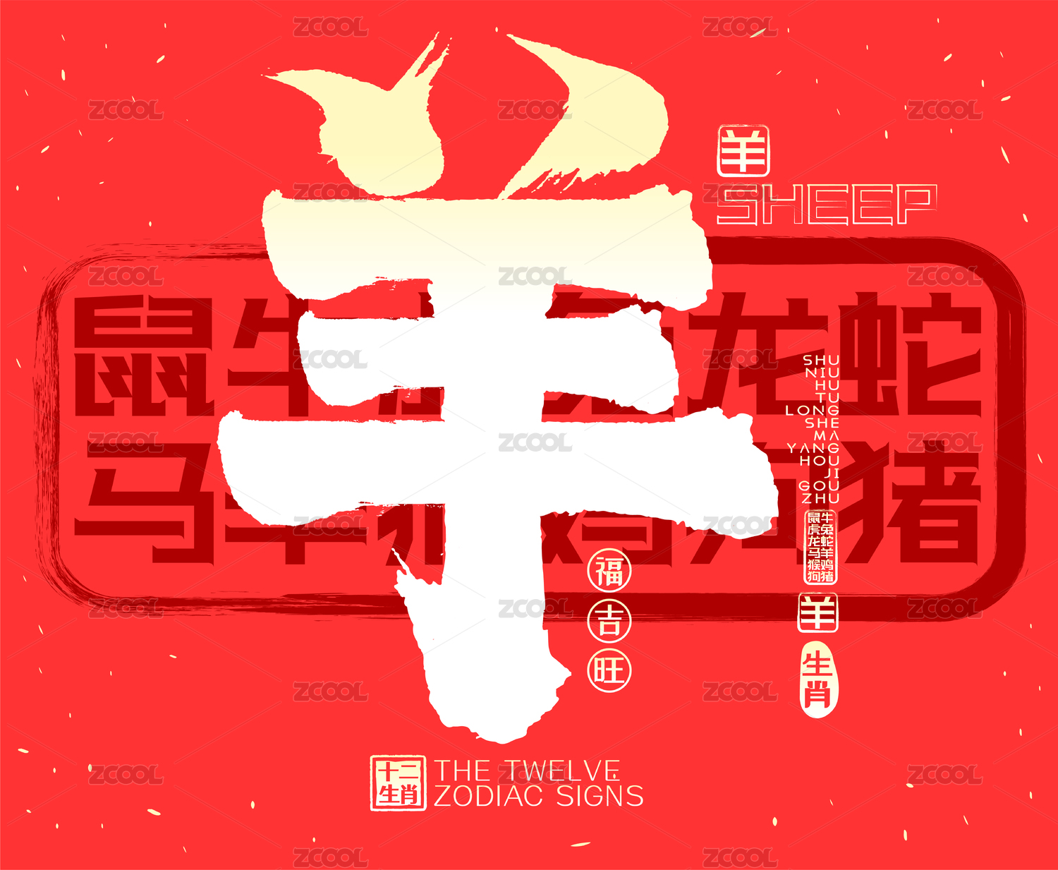 十二生肖未羊金色发光喜庆中国风矢量毛笔字