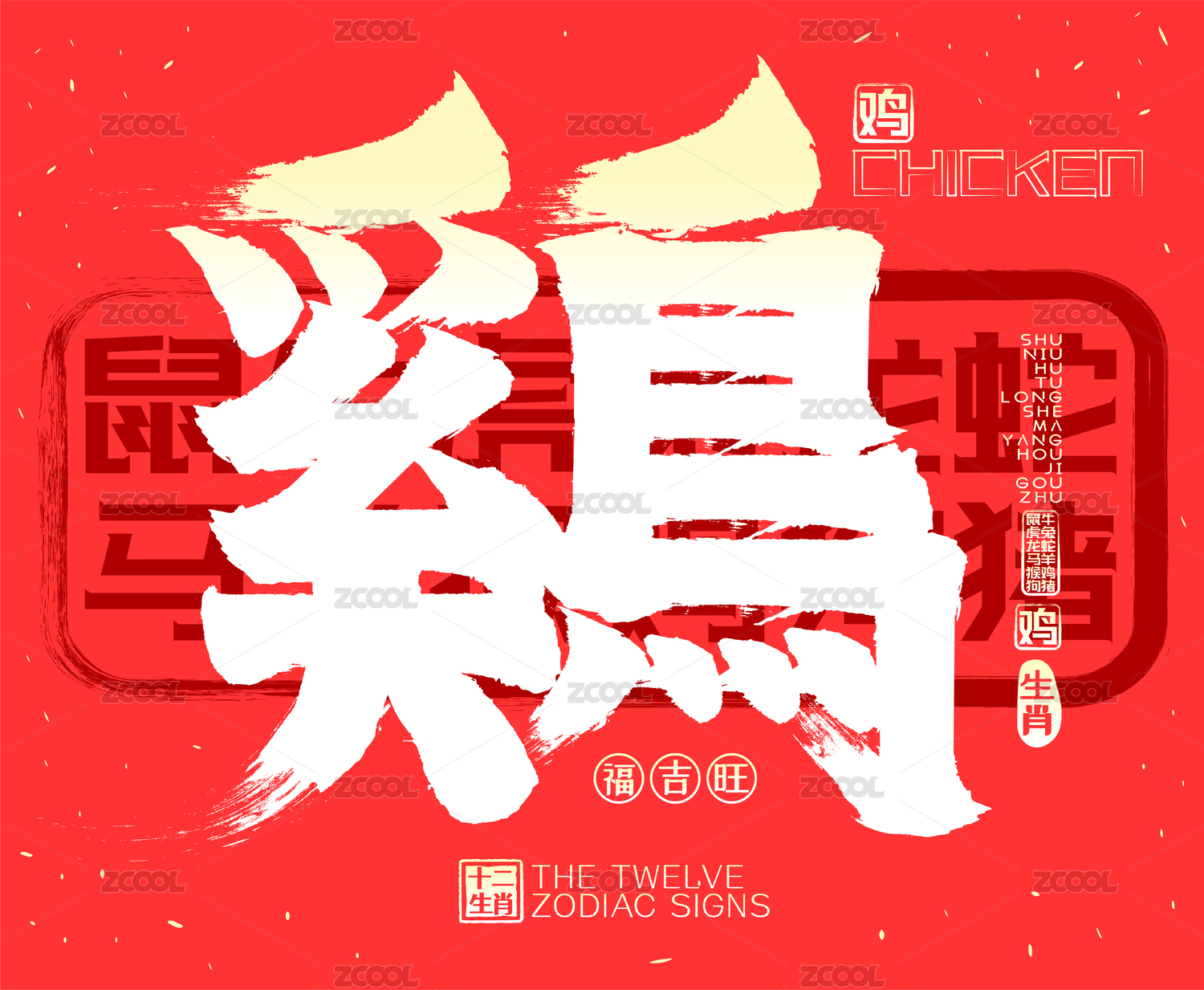 鷄十二生肖喜庆水墨中国风矢量书法字
