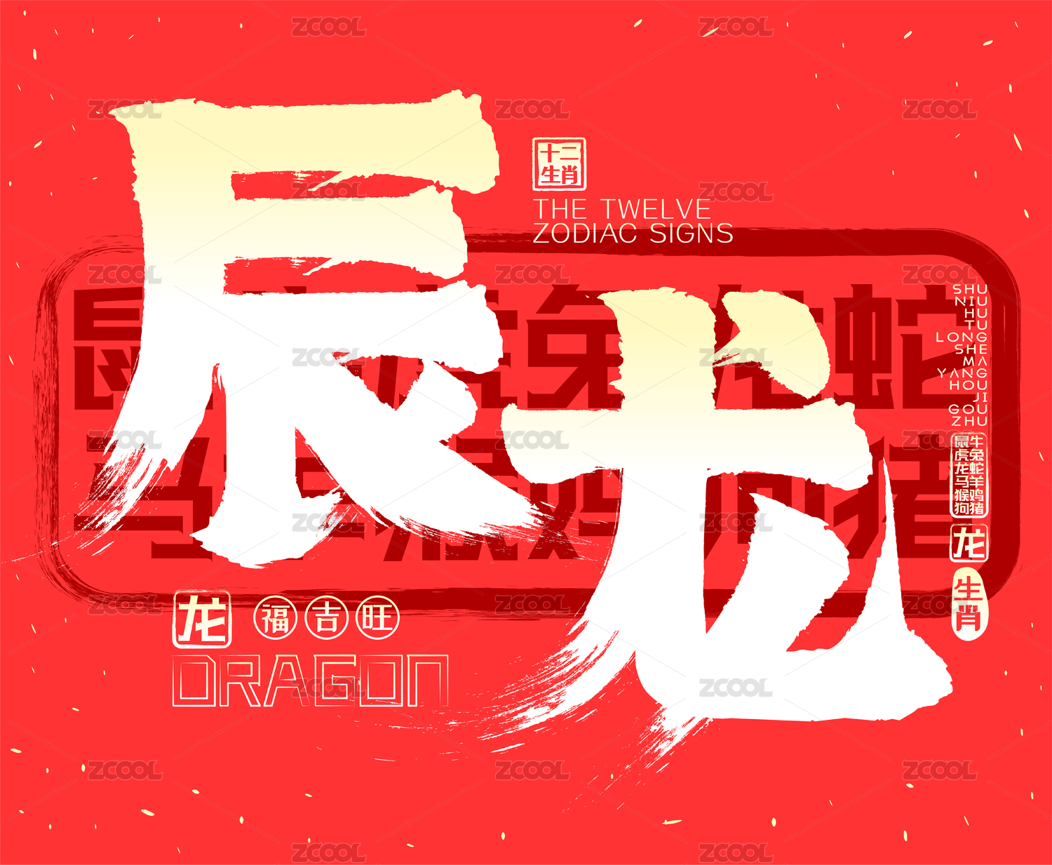 十二生肖辰龙金色发光喜庆中国风矢量毛笔字
