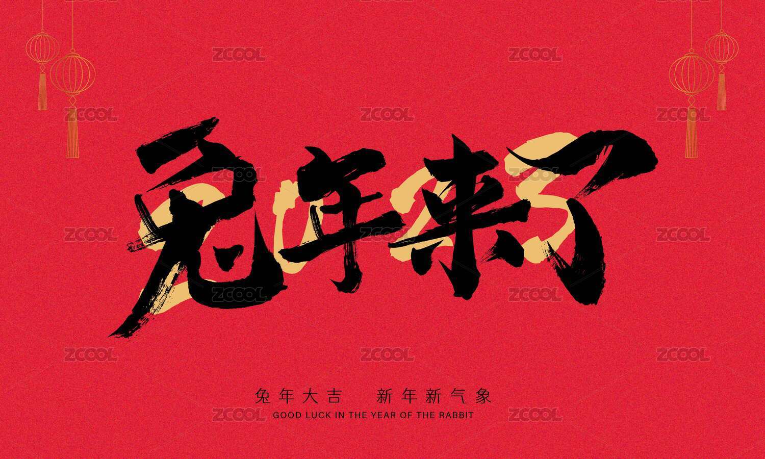 2023玉兔生辉喜庆中国红兔年春节毛笔字