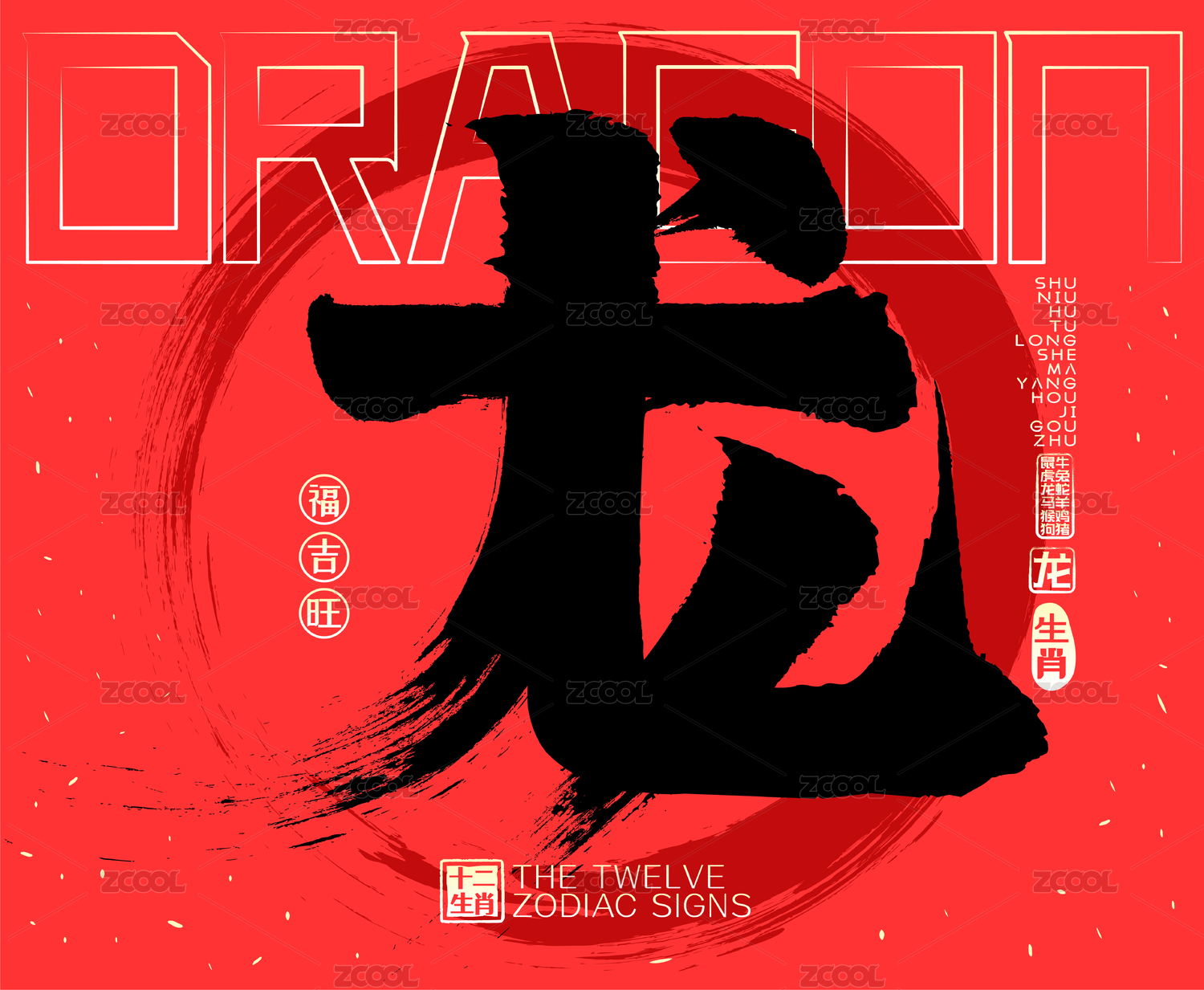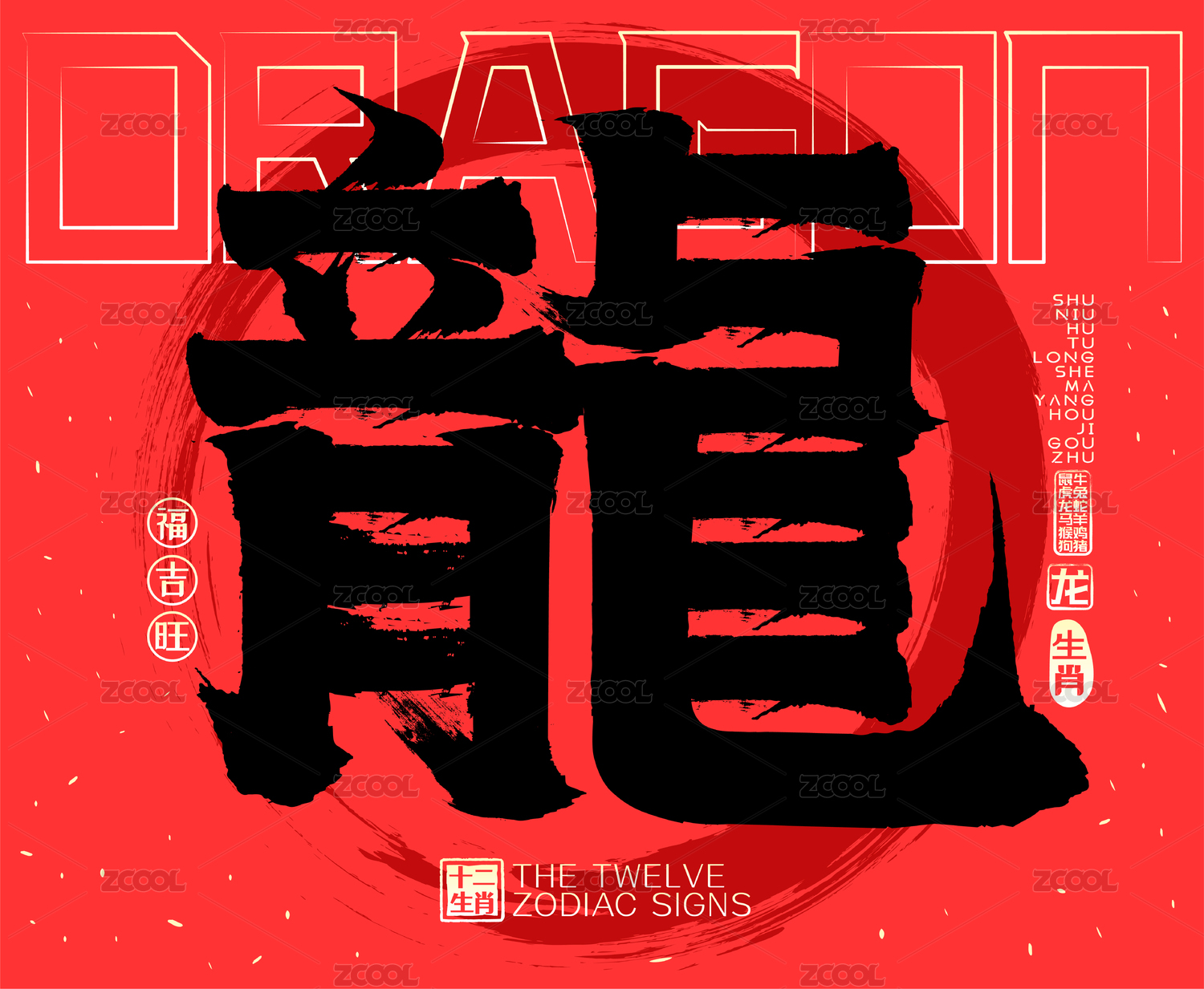 十二生肖龙金色发光喜庆中国风矢量毛笔字